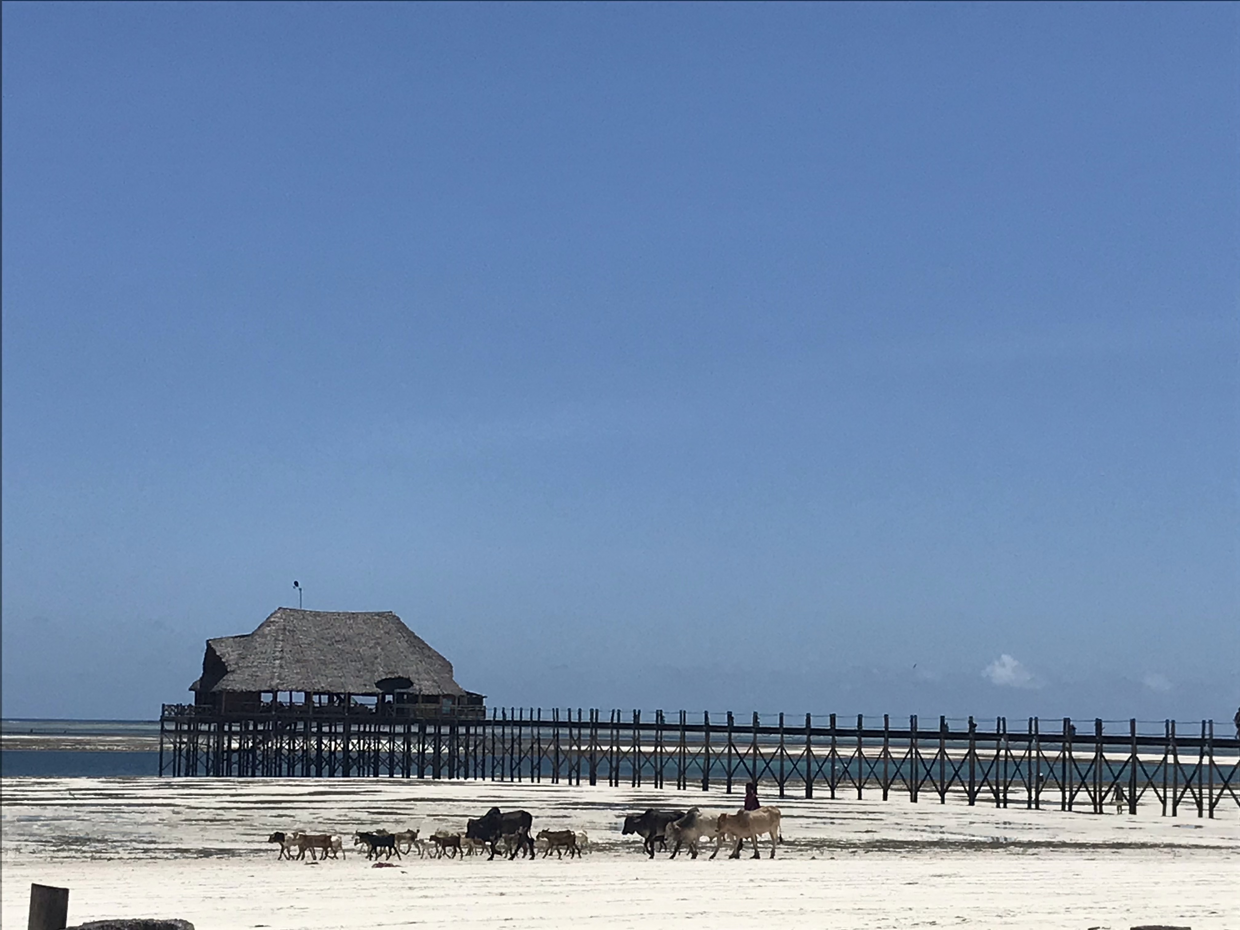 After a quick 40 minute flight from Kilimanjaro (we barely got higher than we hiked to before the plane started to descend) we stepped out of the plane and felt the heat and humidity. Such a drastic difference to the weather we spent most of the last week in. After making our way through a hot airport and immigration line (thankfully since we had our Tanzanian Visas already from our arrival in Kilimanjaro we could skip that long part of the process here and just had to fill out the separate Zanzibar specific customs form) we had a one hour drive to our hotel which was on the northeast coast of the island. Driving in Zanzibar was just as much of an experience as in Moshi – there seem to be a lot of unspoken road rules, passing cars and people within inches of one another, the occasional having to stop for animals in the road, and a lot of ‘anything goes.’