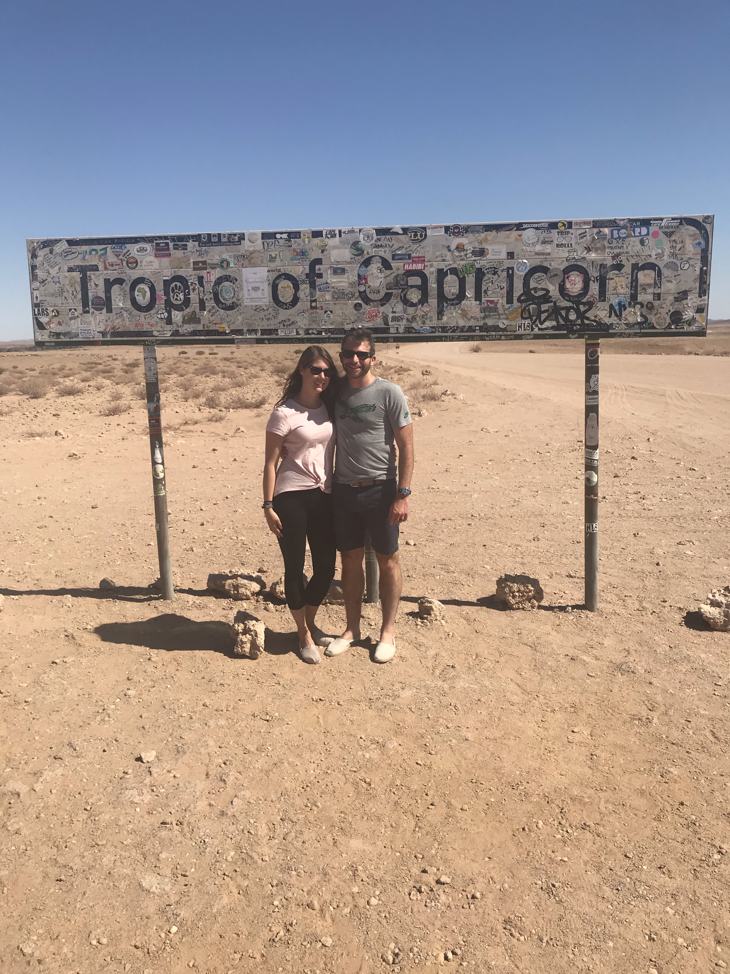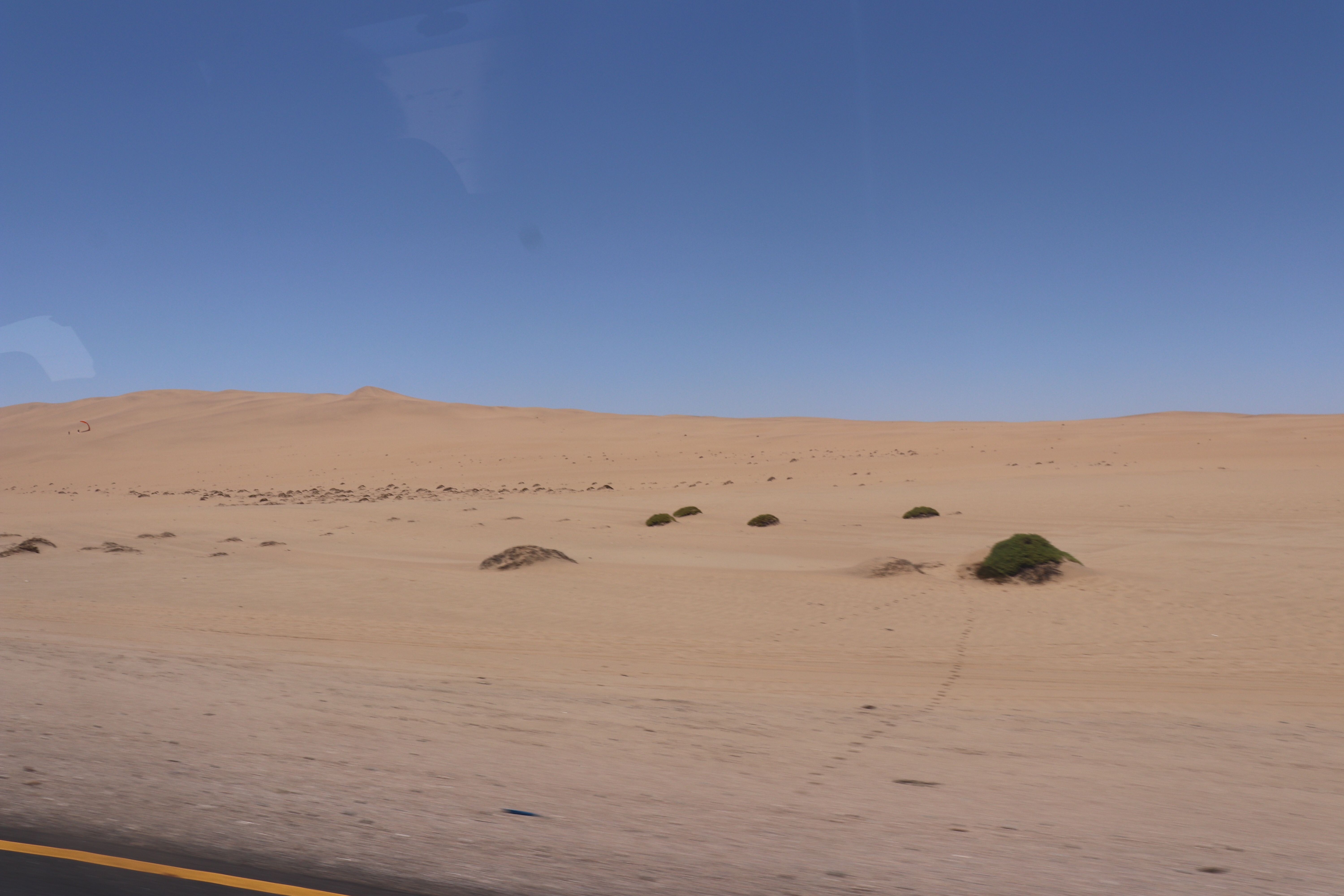 The next morning we had breakfast and headed off for another 4 hour drive towards Swakopmund, a small coastal town where we would be spending our next few days. Some highlights along the way included a stop along the Tropic of Capricorn and at a view point over mountains made of fragmented limestone broken by the heat. The scenery on this part of the drive as we headed toward the coast was very different than the first day. We starting driving through canyons and mountains and gravel which ultimately gave way to sand, stones, and little vegetation. You really felt like you were truly in the desert the closer we got to the coast when there was nearly nothing to be seen on the horizon.