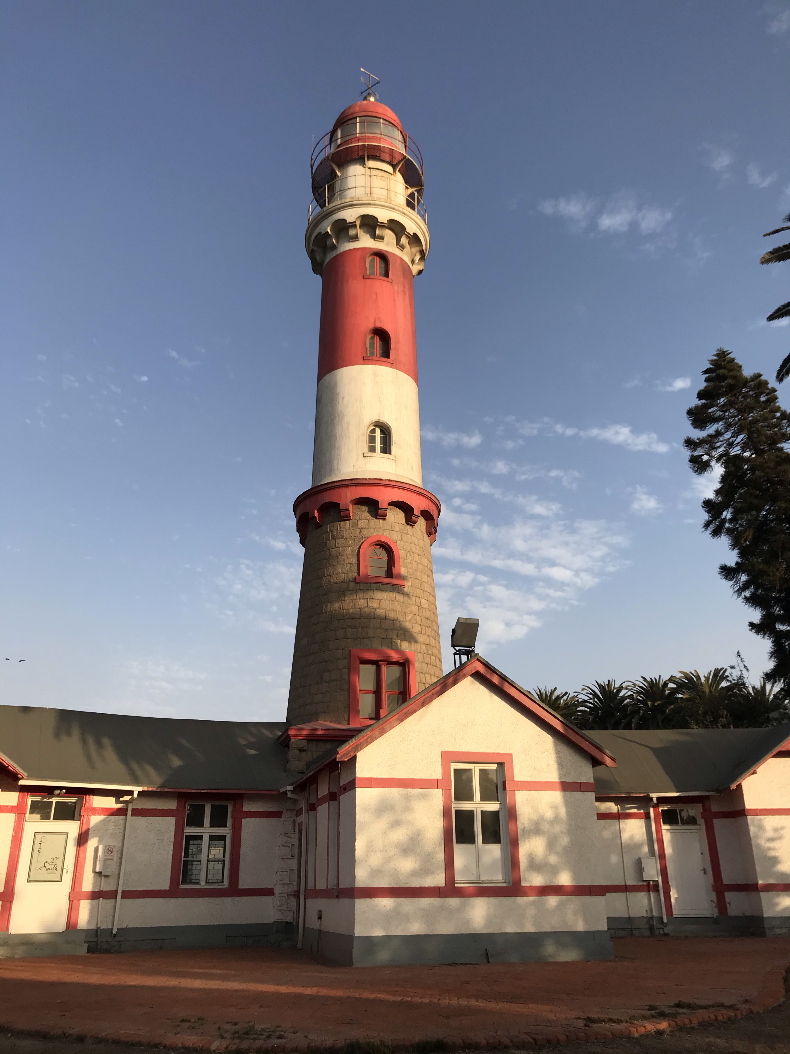 As we got closer to the coast, we again saw large sand dunes which surround the coastal port town of Walvis Bay and where we were headed in Swakopmund. While the dunes here contain the same minerals as the ones we had seen and climbed the prior day, they take on a different color of a lighter peach / tan due to the sea air. We first drove through the town of Walvis Bay which is the main port of Namibia and also used as a link to the coast for nearby countries Botswana and Zimbabwe. We then continued the drive toward Swakopmund – with the Atlantic Ocean to our left and giant sand dunes towering over us to our right until we came to the town and found our accommodation.