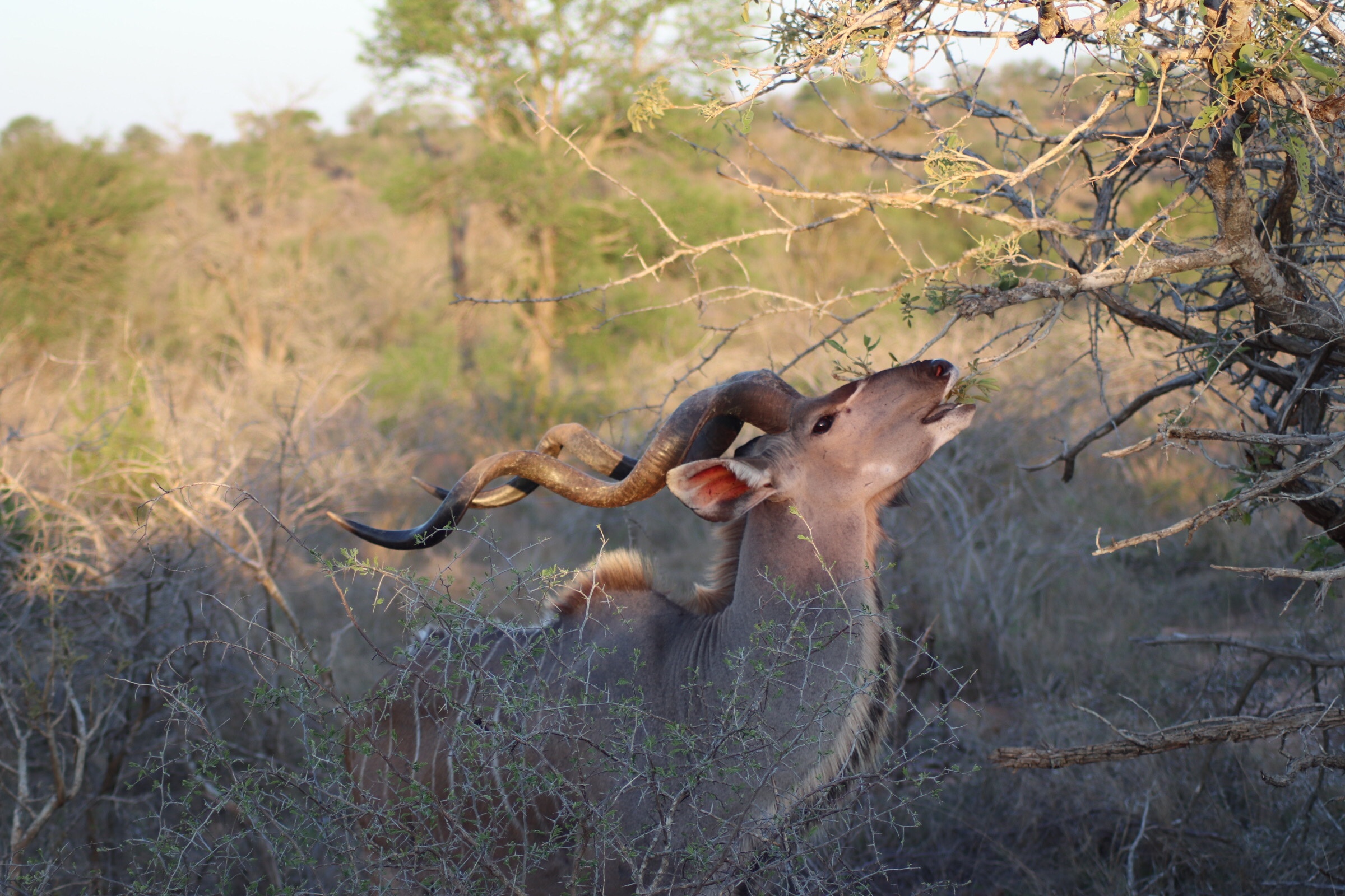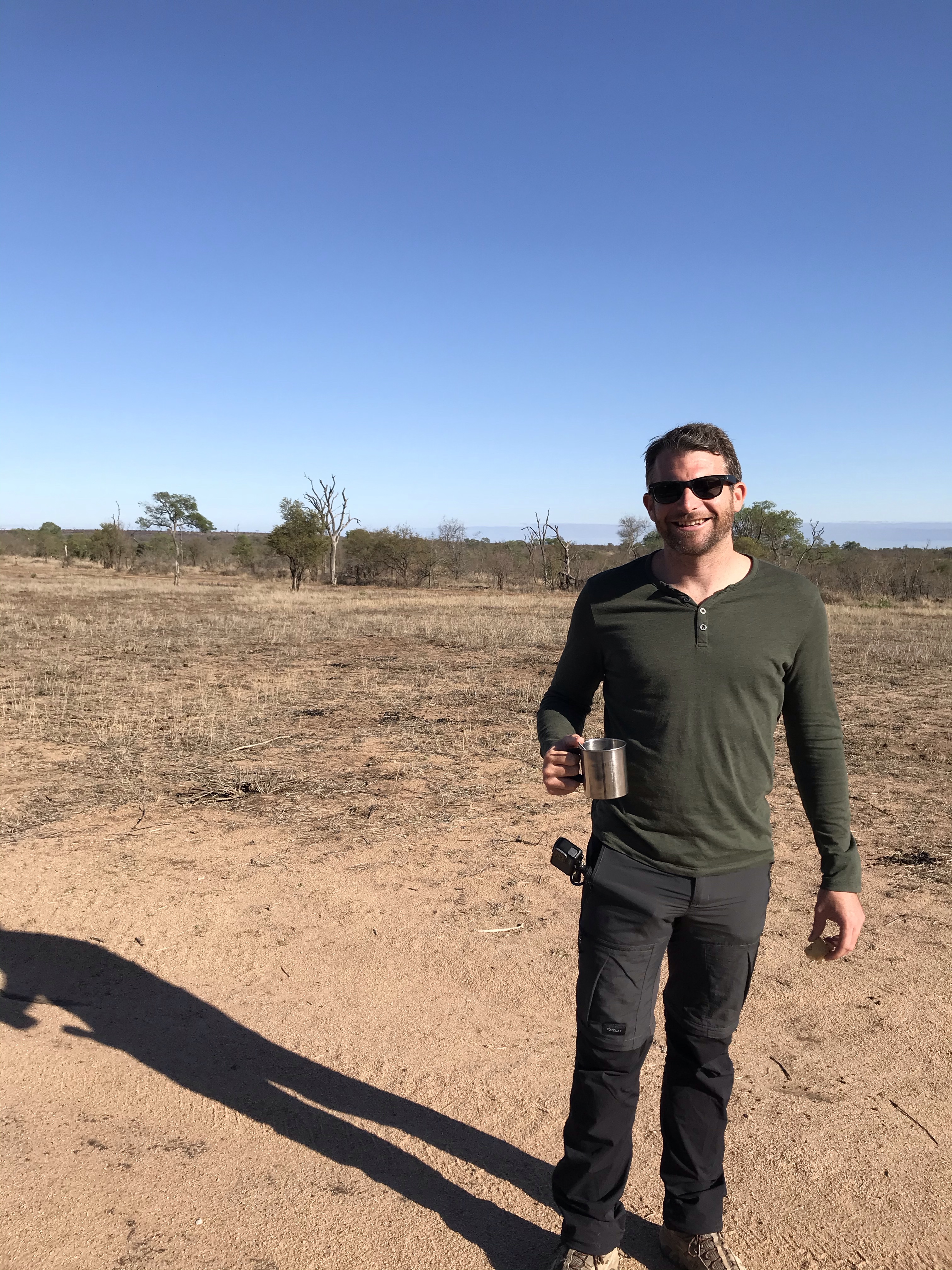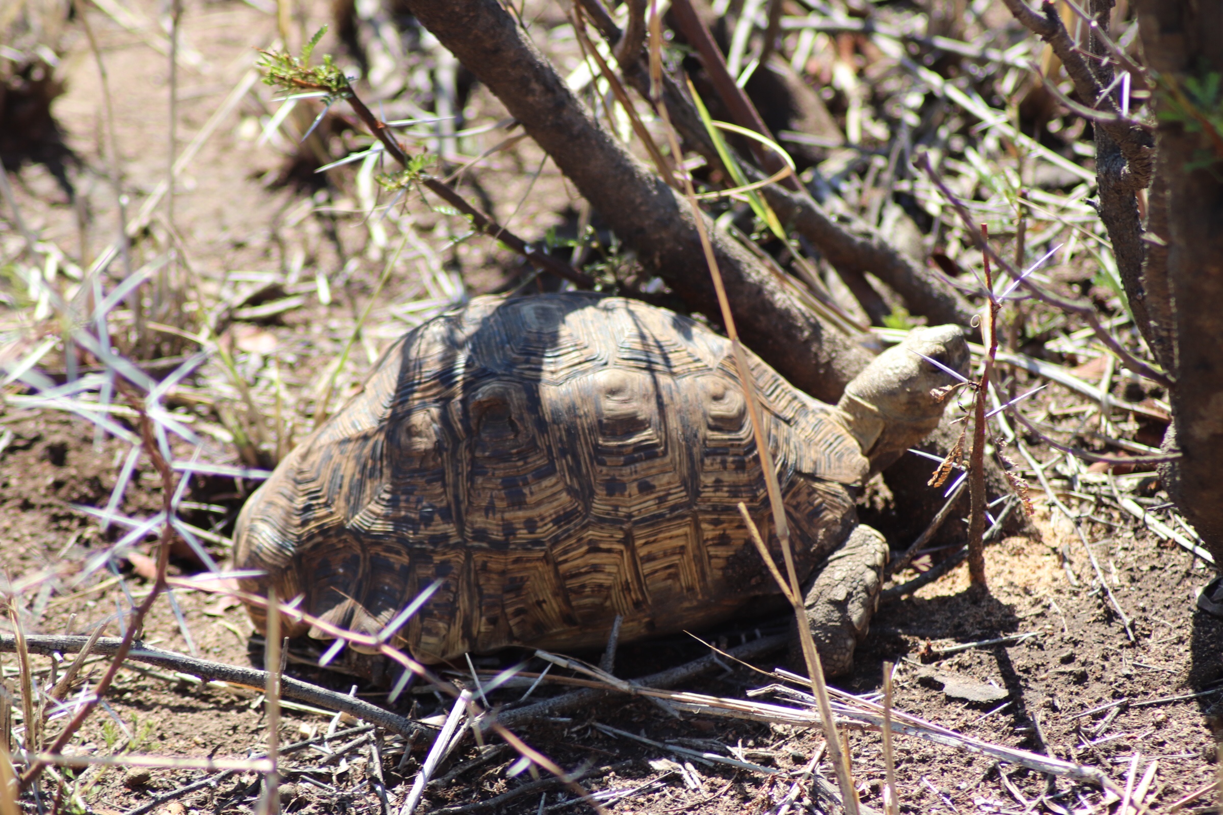 It was about halfway through our drive at that point and time for our morning coffee/tea break in the bush. We hopped out of the vehicle and enjoyed a cup of coffee and the scenery all around us. Our guide said ‘if you see something that looks like it’s going to eat you, just jump back into the car’, but we had no such luck while on foot. After the break we continued for a while seeing mostly more impala and kudu, but coming across other smaller animals as well such as the mongoose, a tortoise, and rather large lizards.