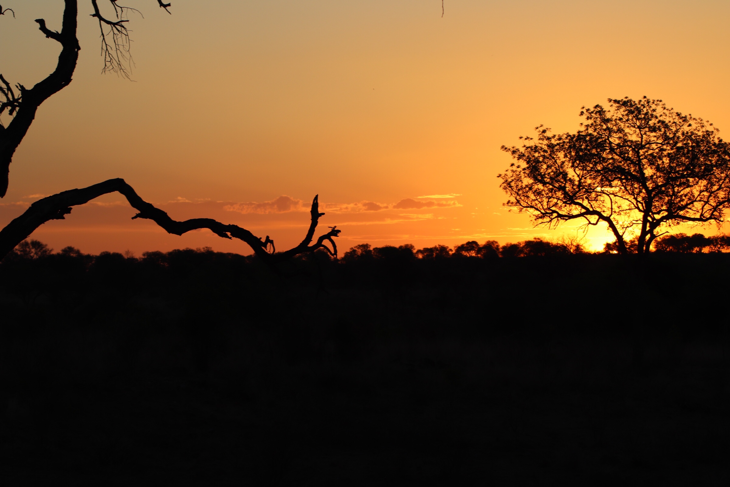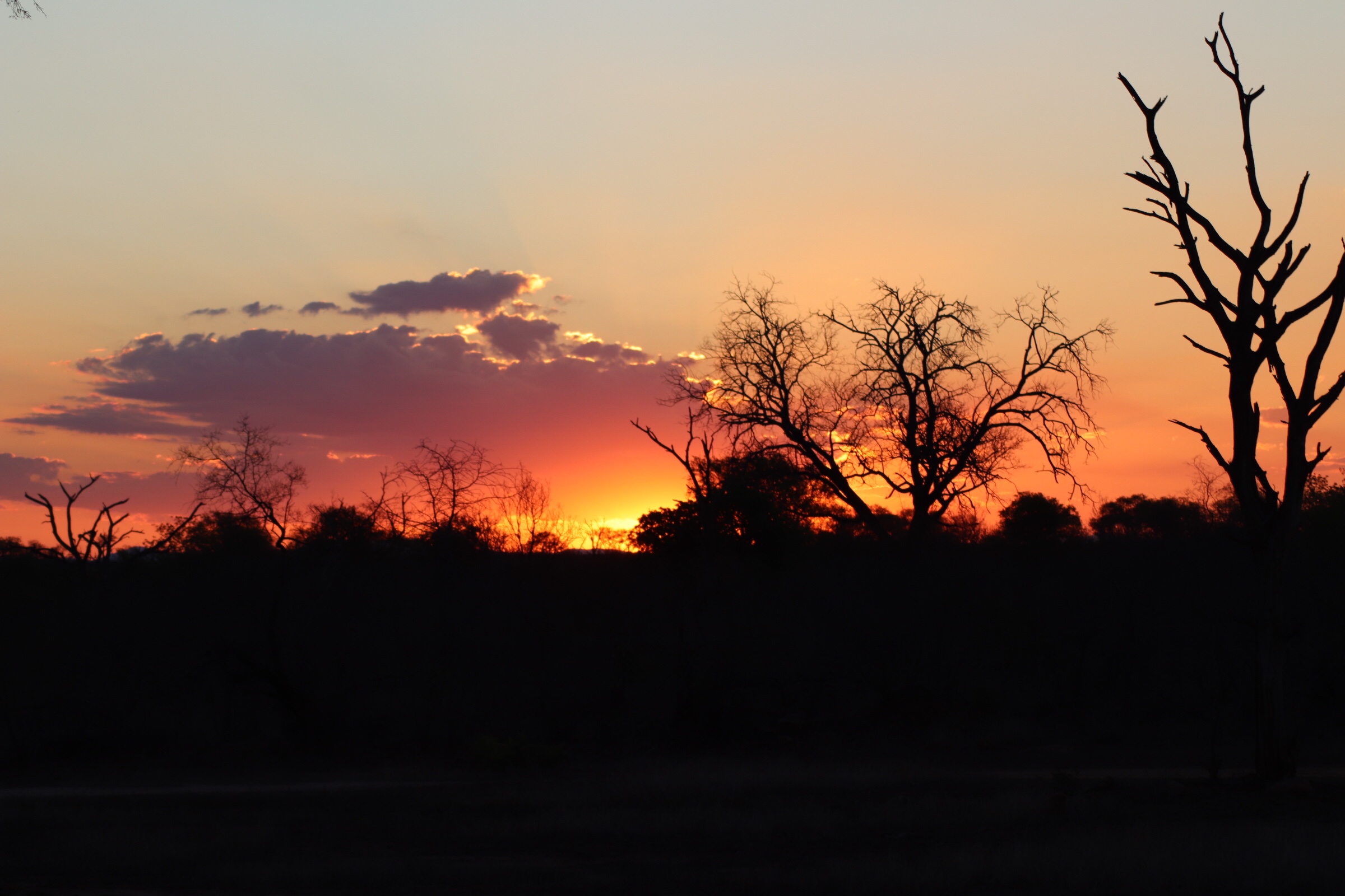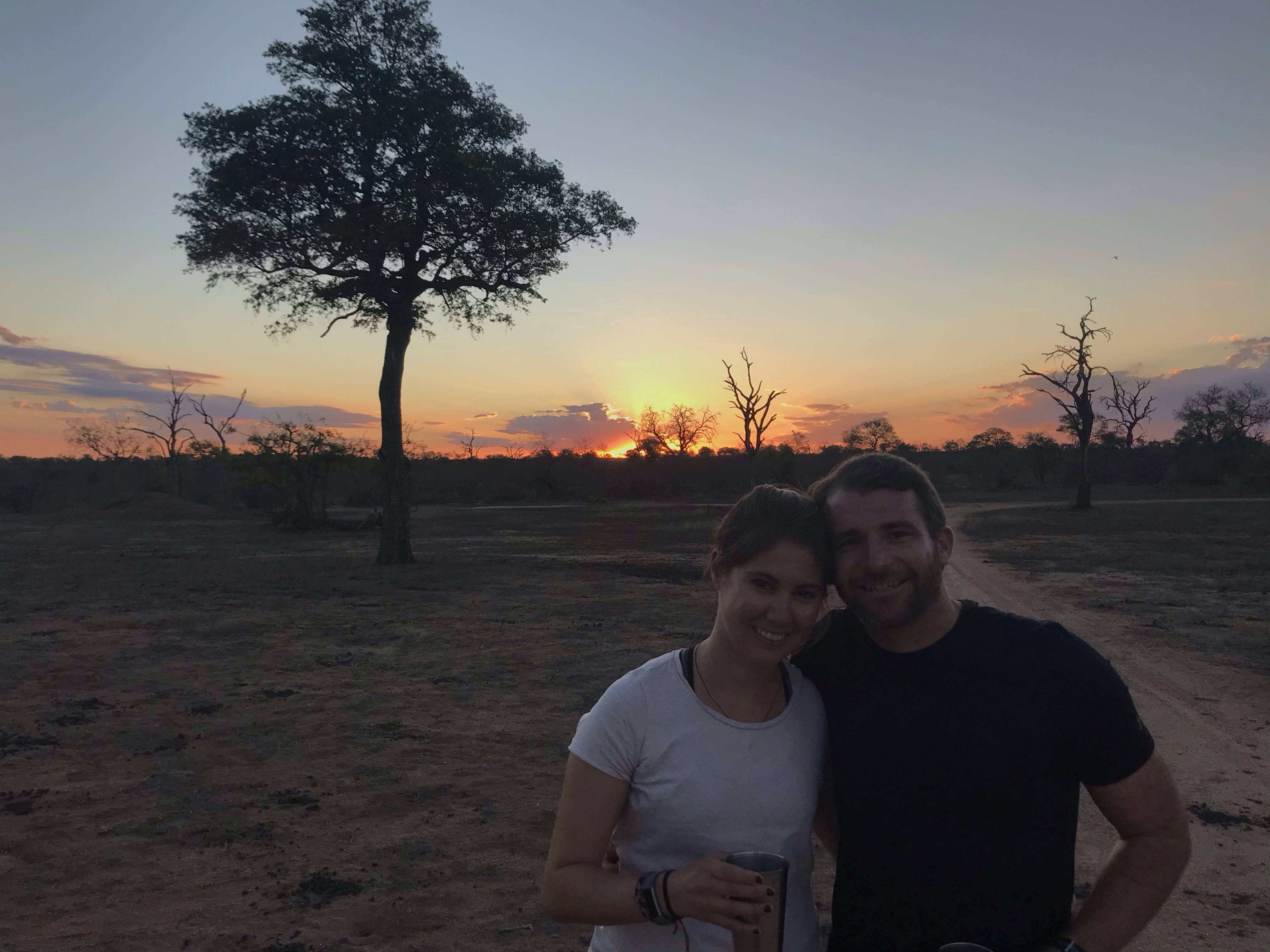 We were out of animals for the day but enjoyed the landscape and beautiful sunset views on our drive out of the park and back to the lodge. We had our sundowners around the fire tonight rather than in the bush (thanks to the Kruger rules) and followed by a delicious dinner of South African cuisine by the fire. We chatted with the new people who had arrived and said goodbye to the Spanish friends we made as they were leaving in the morning, before heading to bed and getting ready for another early start the next day.