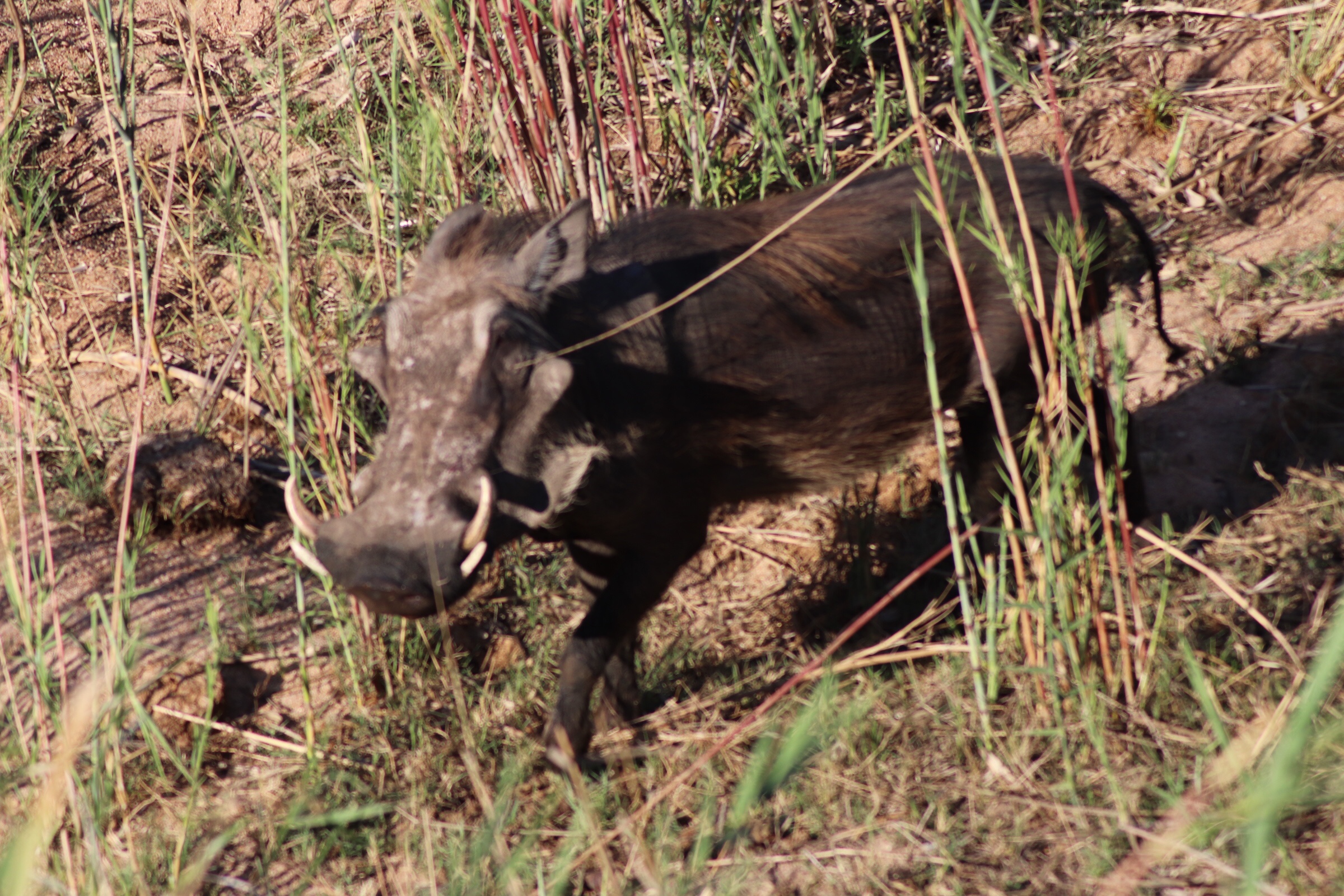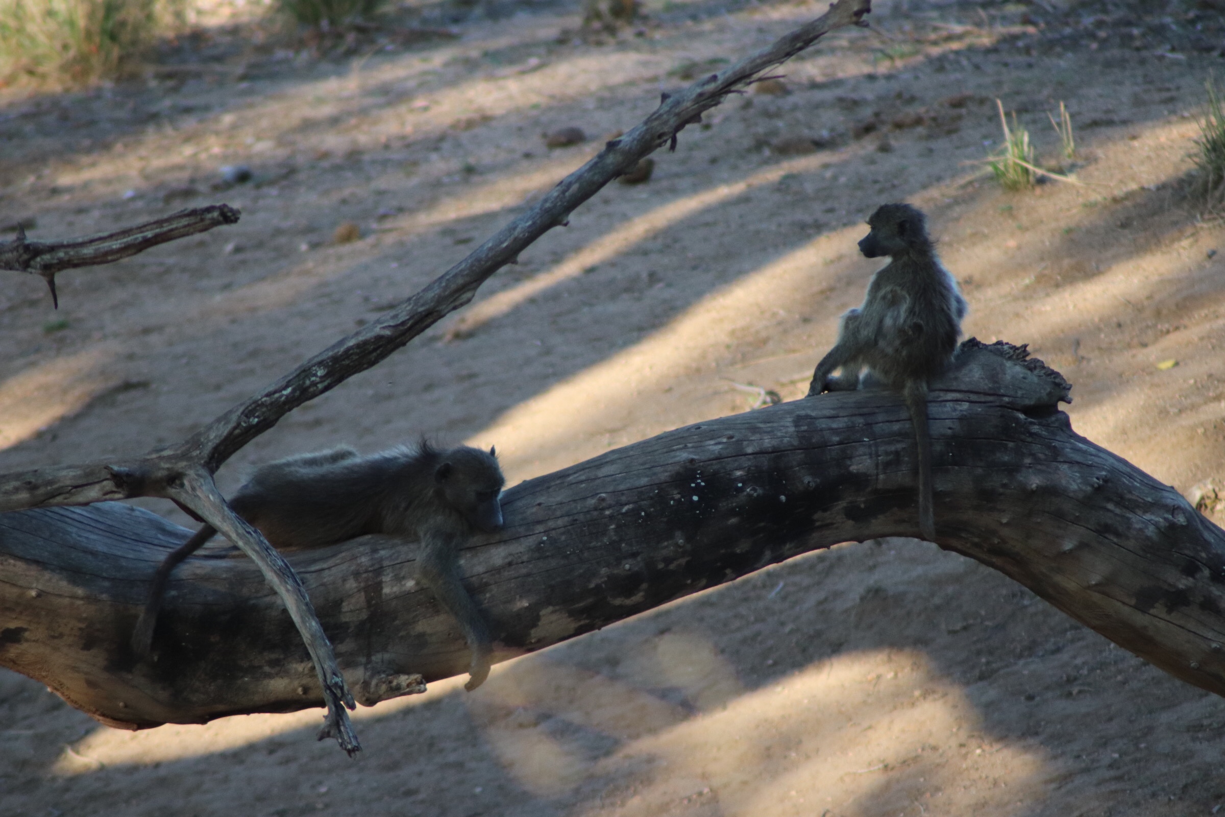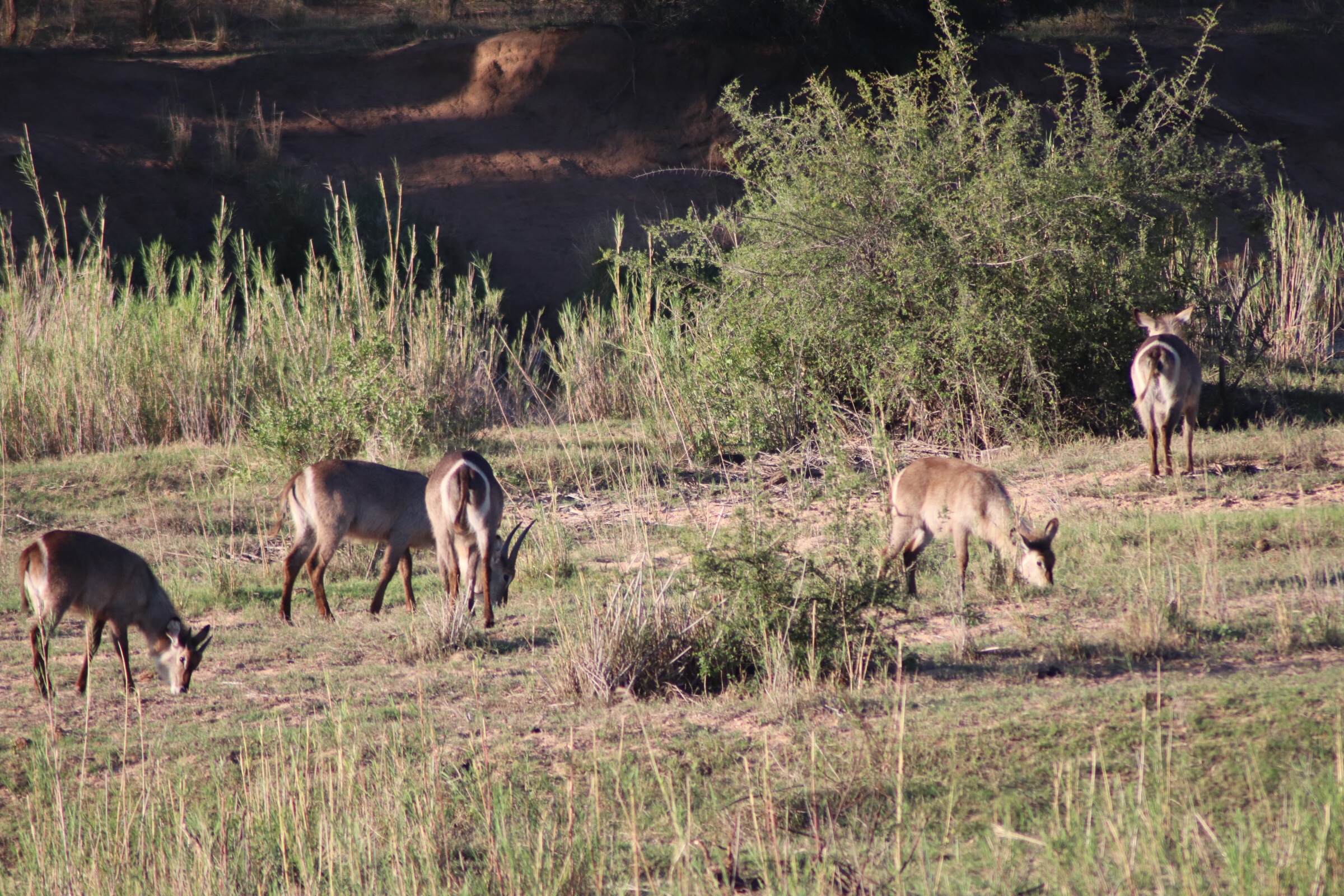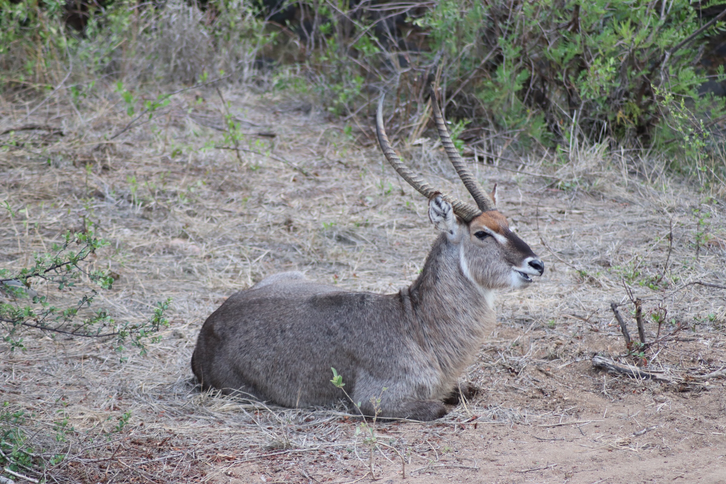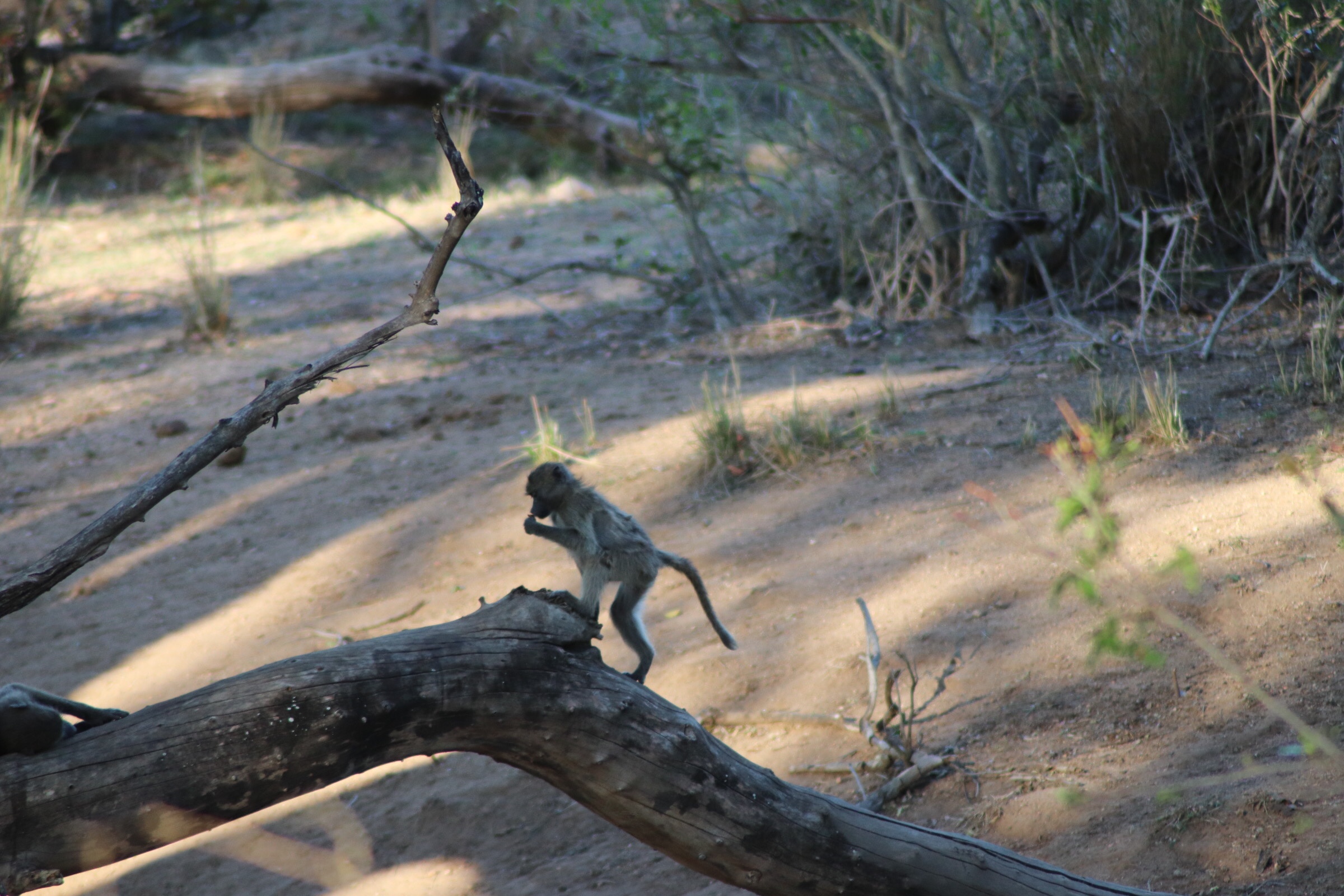 We checked in and passed through the security check and gated entrance to the park and started to make our way along the road which unlike in Sabi Sands was more of an actual road. Kruger has a mixture of tarred and dirt roads. Eyes peeled, we scanned left and right across the roads to see what we could find. Sinead was taking us out today, and we were about to make a turn when she spotted a group of cars up ahead and said, let’s just check out quickly what they are looking at. What a good thing it was that we did – a bit off the road, a leopard was walking parallel through the thick bush. We could see it with the naked eye but when you zoomed in on it you could see how beautiful of an animal it was, covered in spots and moving swiftly along. It was a male and he was marking his territory, she explained to us. With the leopard sighting last night being in very thick grass and quite far from us and only able to grab little glances of it at a time, we were especially excited to see this one this morning. We watched him in the distance for a while and tried to follow him along the road as he walked somewhat further into the bush, losing him behind rocks at times and then finding him again in the grass, until he seemed to disappear from sight. It was a great way to start the morning.