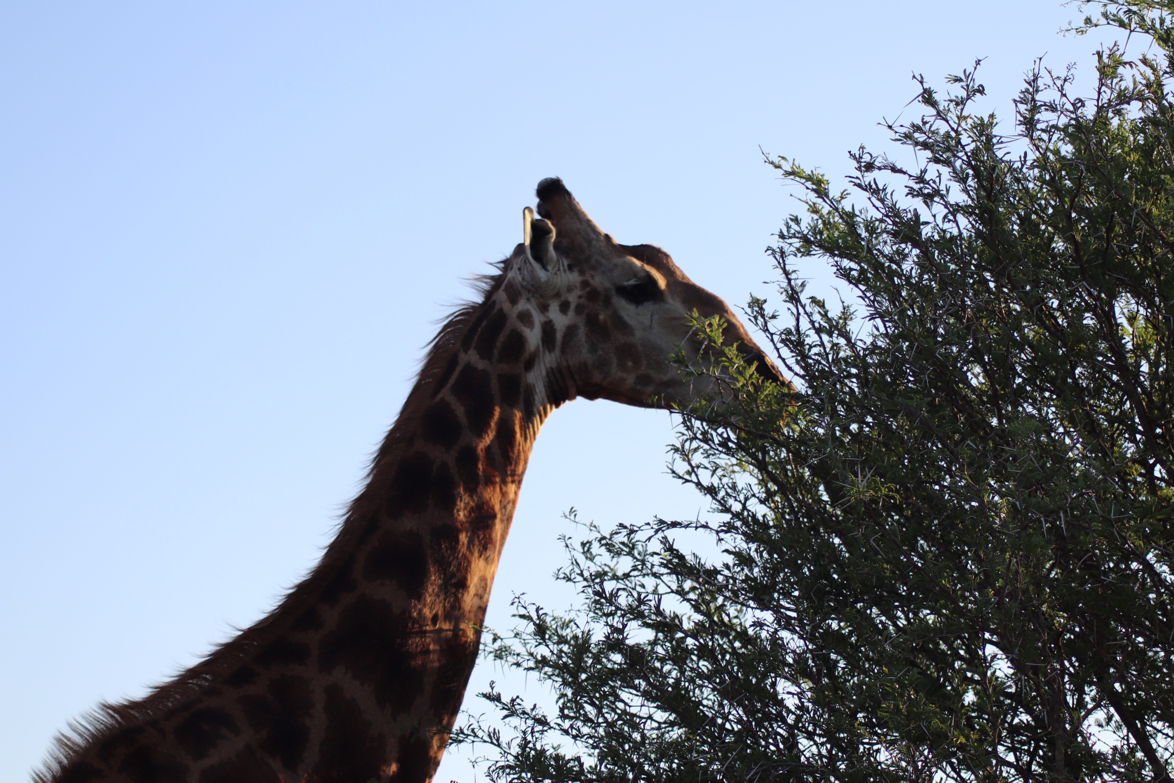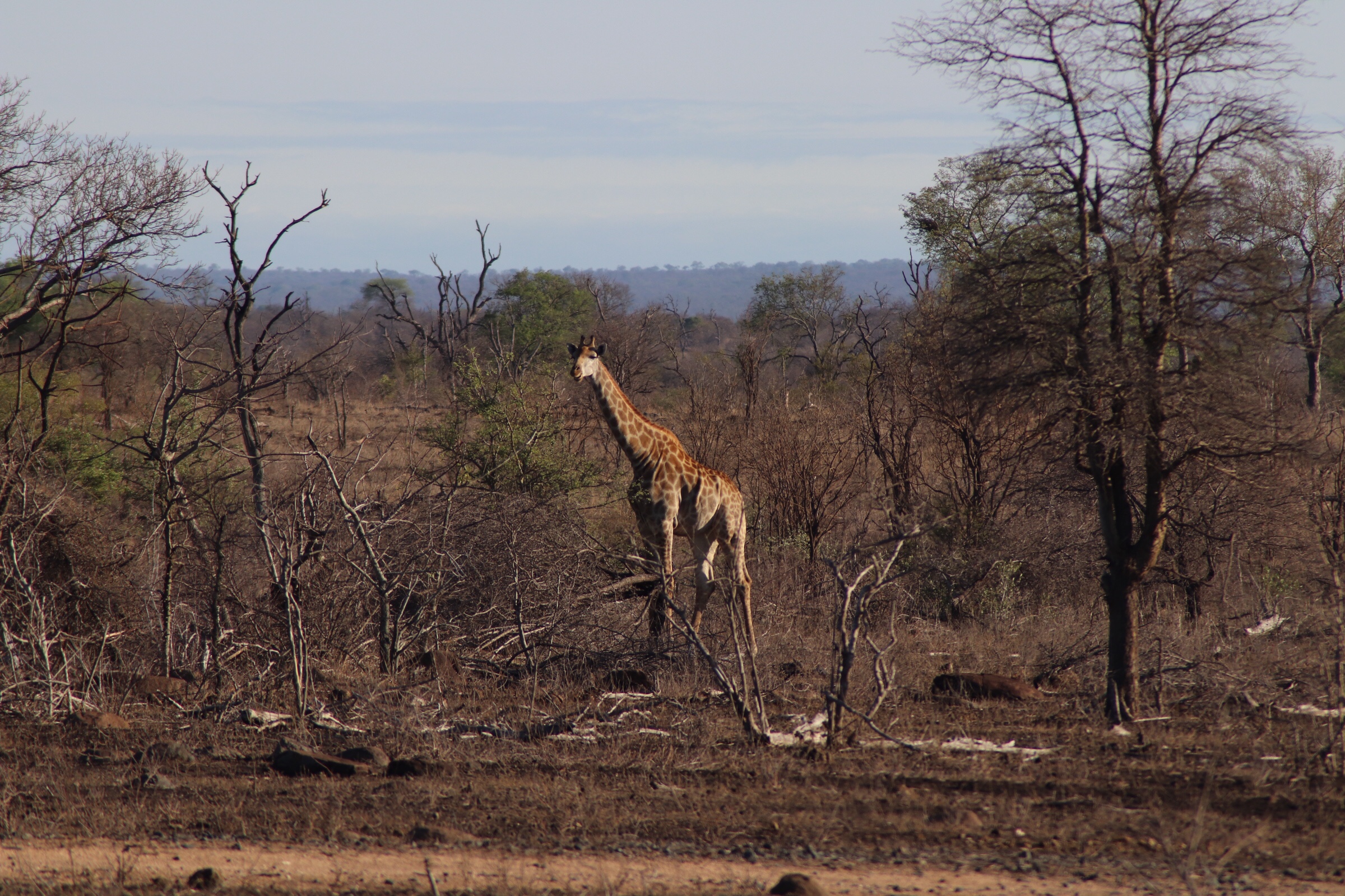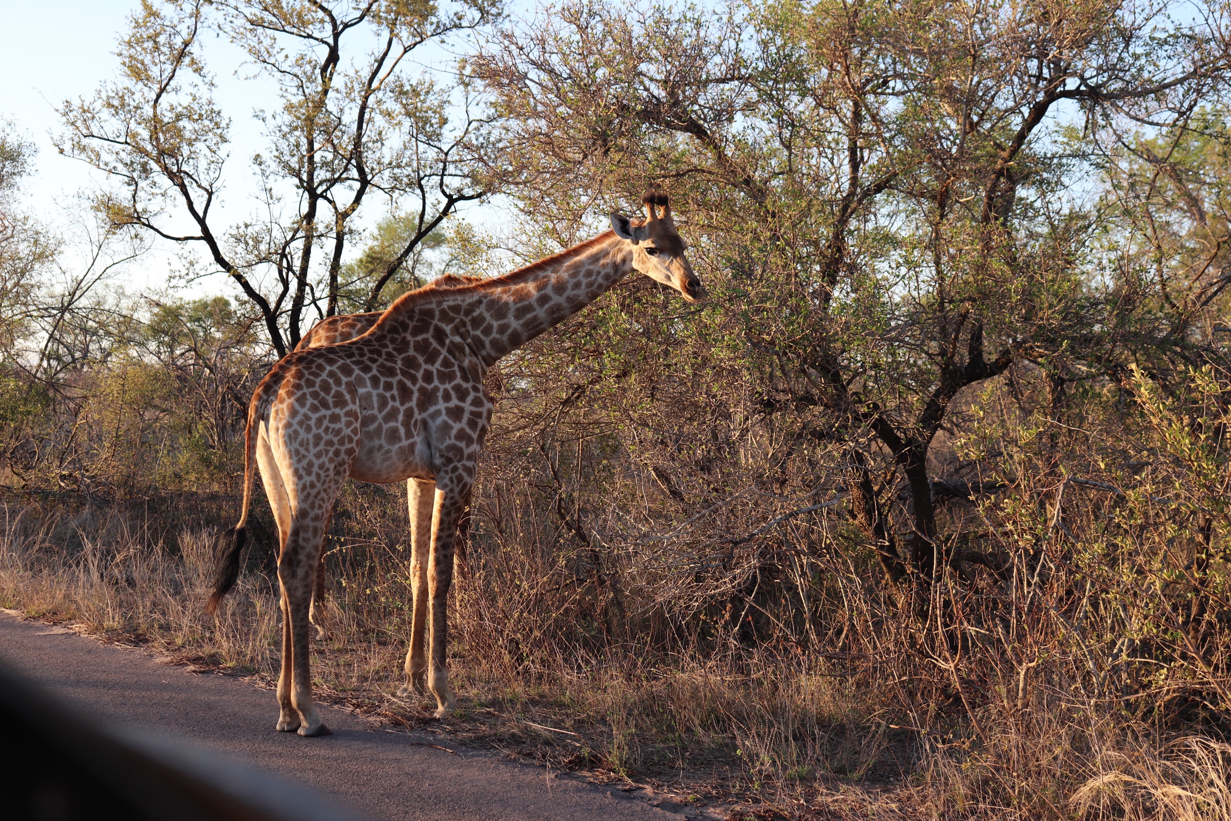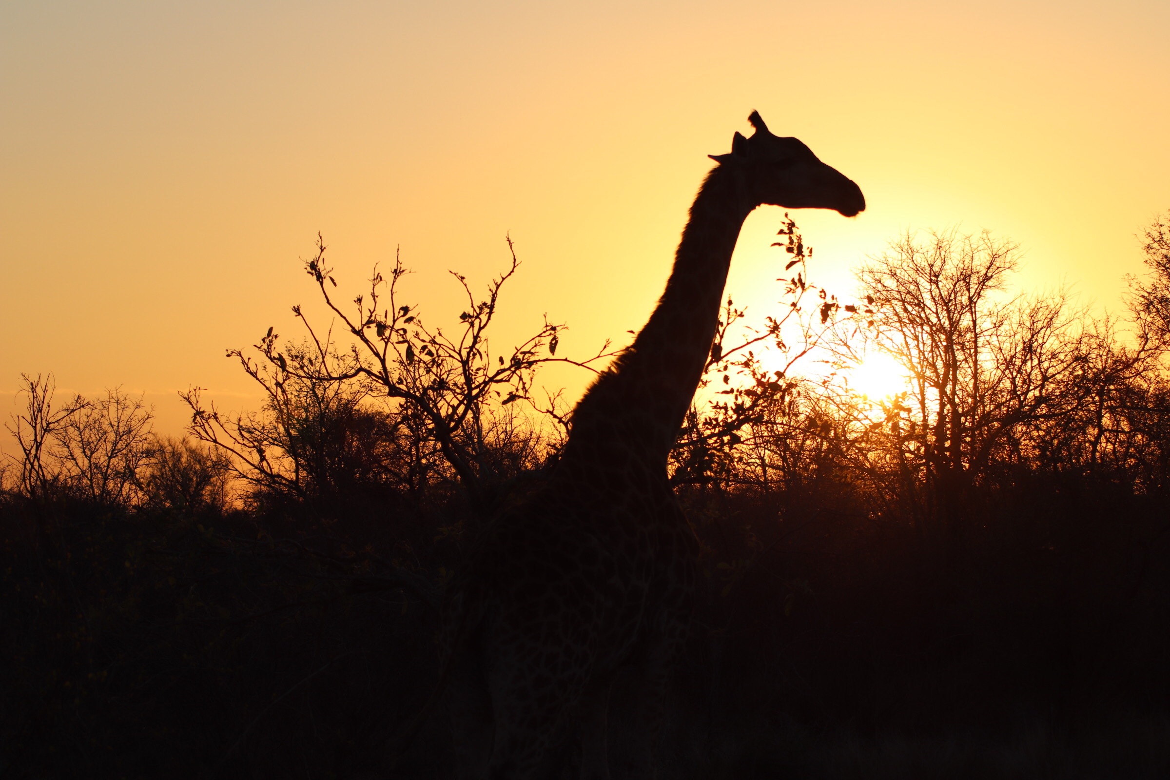 As the sun was setting and we drove to the exit of the park, we came across one last giraffe, and watched her in the evening light. We enjoyed the last magnificent views as we said goodbye to Kruger Park.