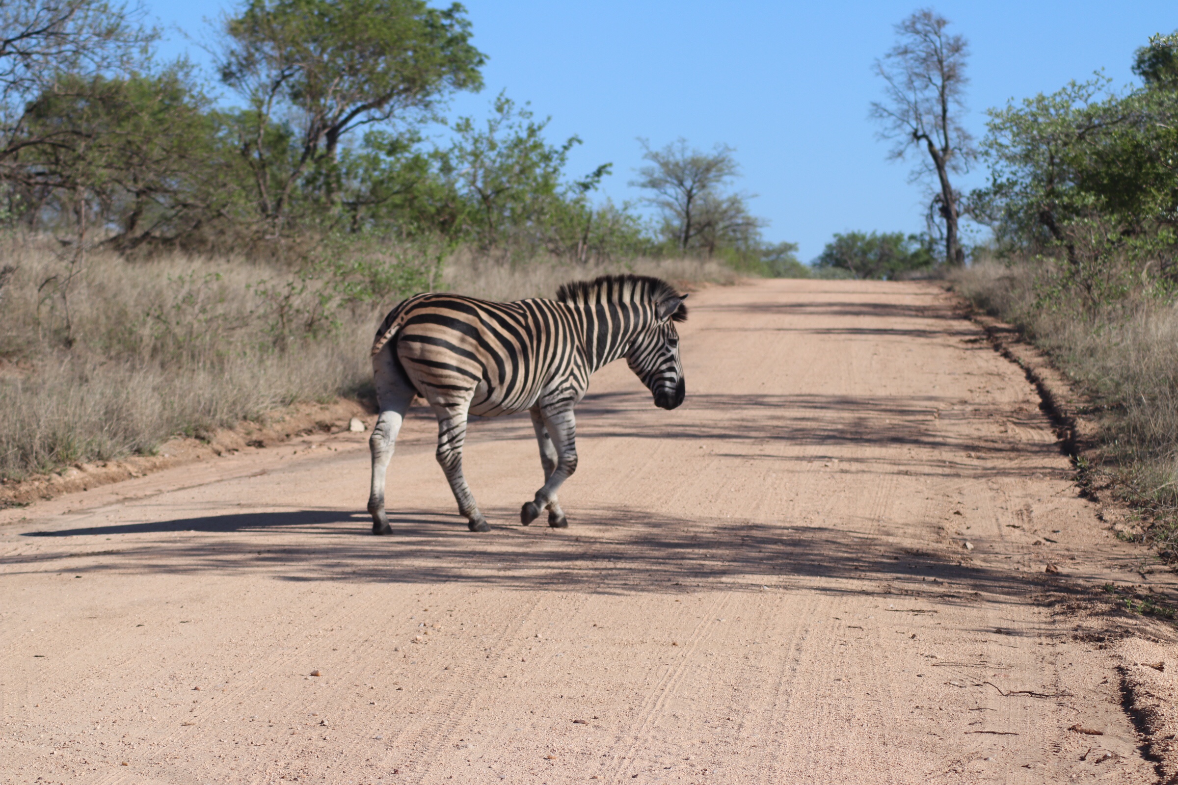 Another early morning wake up and we were off at 5:15 – this time to Kruger National Park. Kruger is an absolutely massive park. We heard lots of different comparisons – it’s the size of Israel, Denmark, Scotland, New Jersey, you name it – either way it is a big area full of wildlife. Since it’s a national park, Kruger also comes with more rules – cars must have a roof on them (we still had open sides to the vehicle and a little hatch we could open in the front but this time had a canvas roof over our head), we also must stick to the roads (we wouldn’t have the chance to do off-roading to get closer to certain animals like we were allowed to in Sabi Sands), and we had to stay in the vehicle at all times other than certain specified areas (aka good bye bush morning coffee, sundowners, and bush toilets). There were also noticeably a lot more people and more cars – but more on that later.