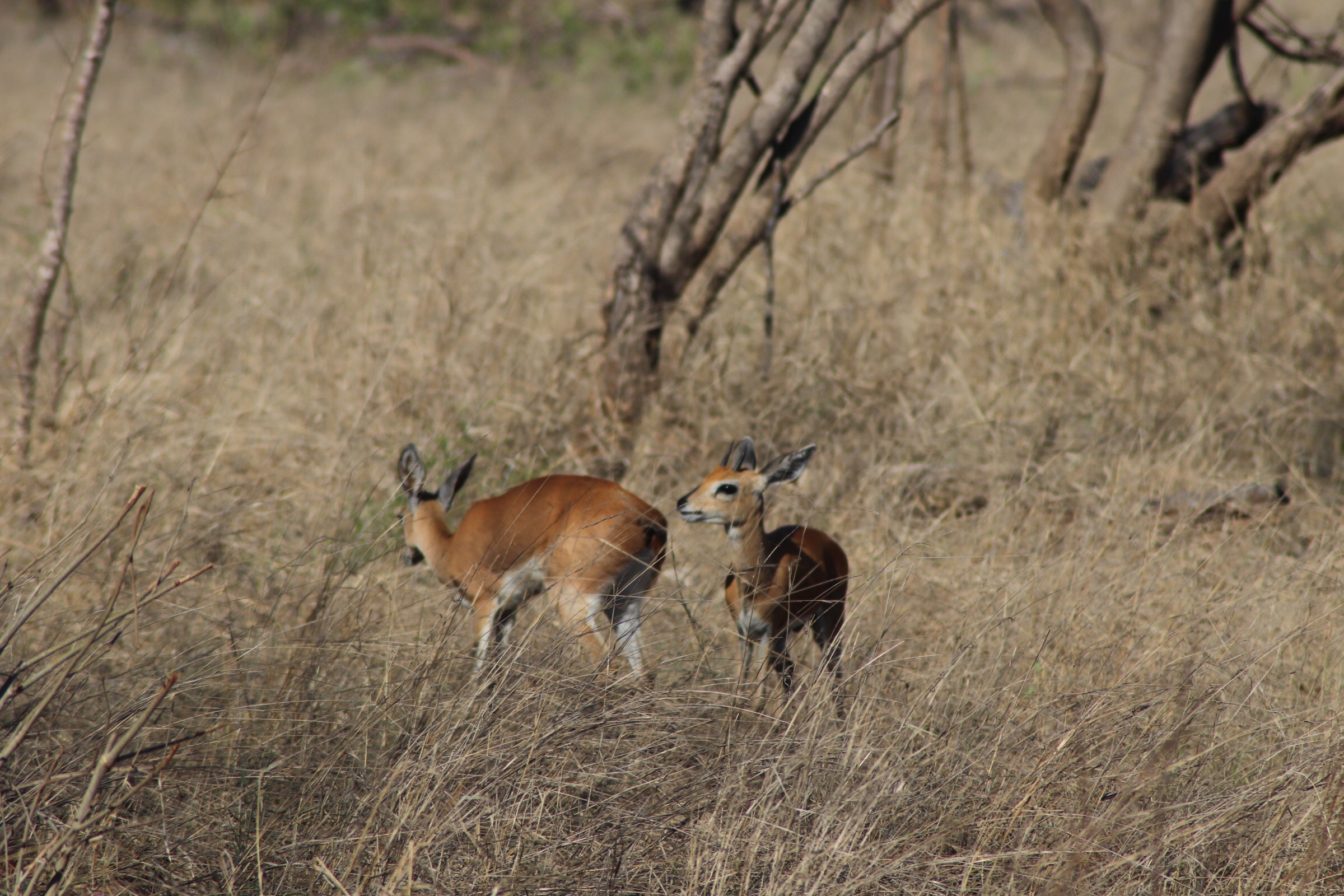 After our nice early 4:45 wake up, we headed out into the bush in search of more animals around 5:15. We hoped that we would be as lucky as we were yesterday. We both slept pretty well in the cool night air, only kept awake by animals a few times during the night – only this time instead of monkeys like there were when we were camping on Kili, this was mainly frogs and birds, and with the storms last night the occasional rumble of thunder. The animals and birds here sure can make some noise!