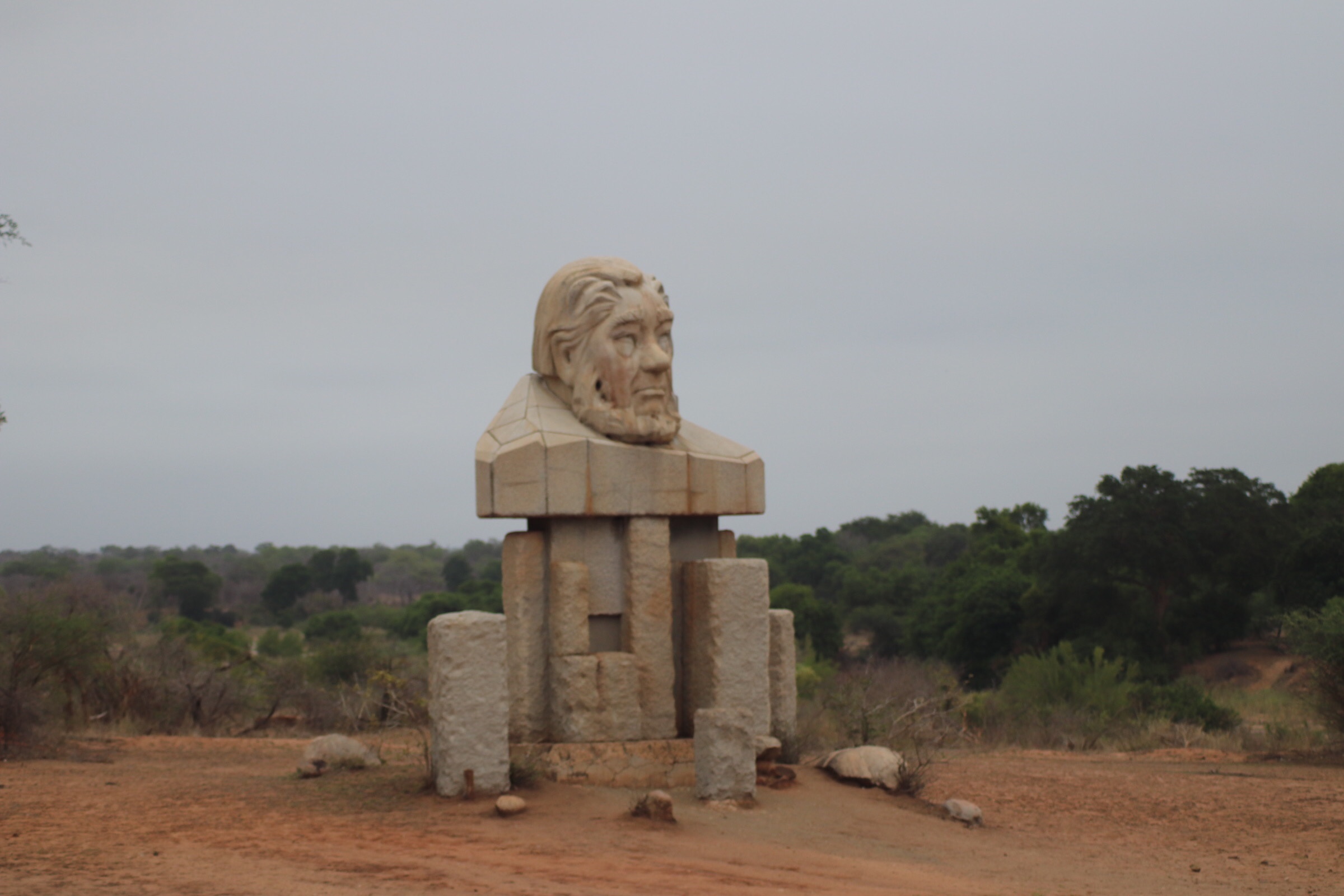 Our Spanish friends had left and today we were heading out with some Danes and a French couple who had arrived over the last few days. It was much cooler today than the last mornings and there were more clouds in the sky. After passing the statue of Paul Kruger at the gate and going through the check in process, we continued out of the entrance area and immediately saw a large giraffe by the side of the road. Our guide told us it was an old female and you could tell by the skin, because it was not as vibrant with bare patches and the hair falling out. Just after her, on the road were some kudu having their morning snack.