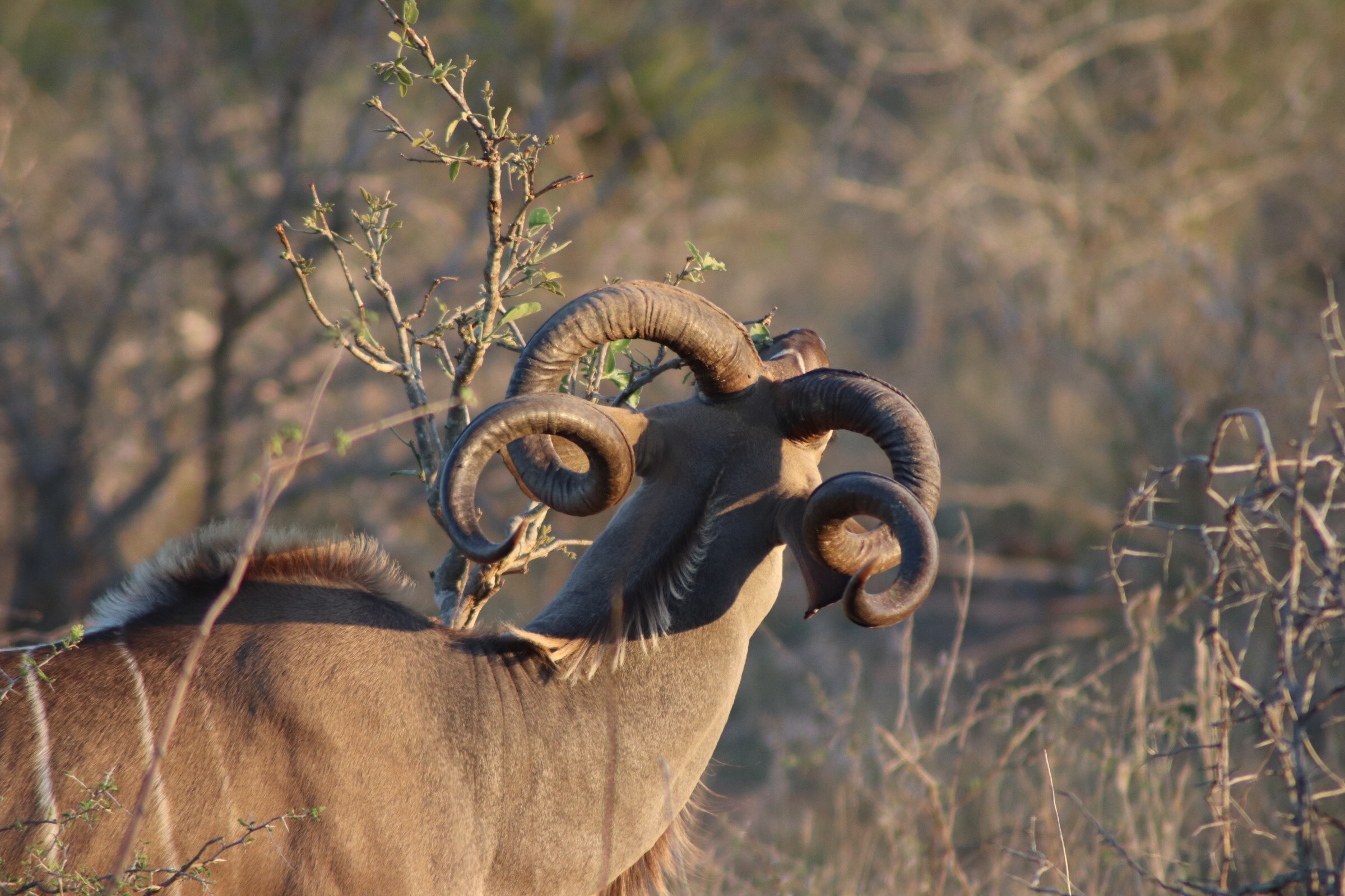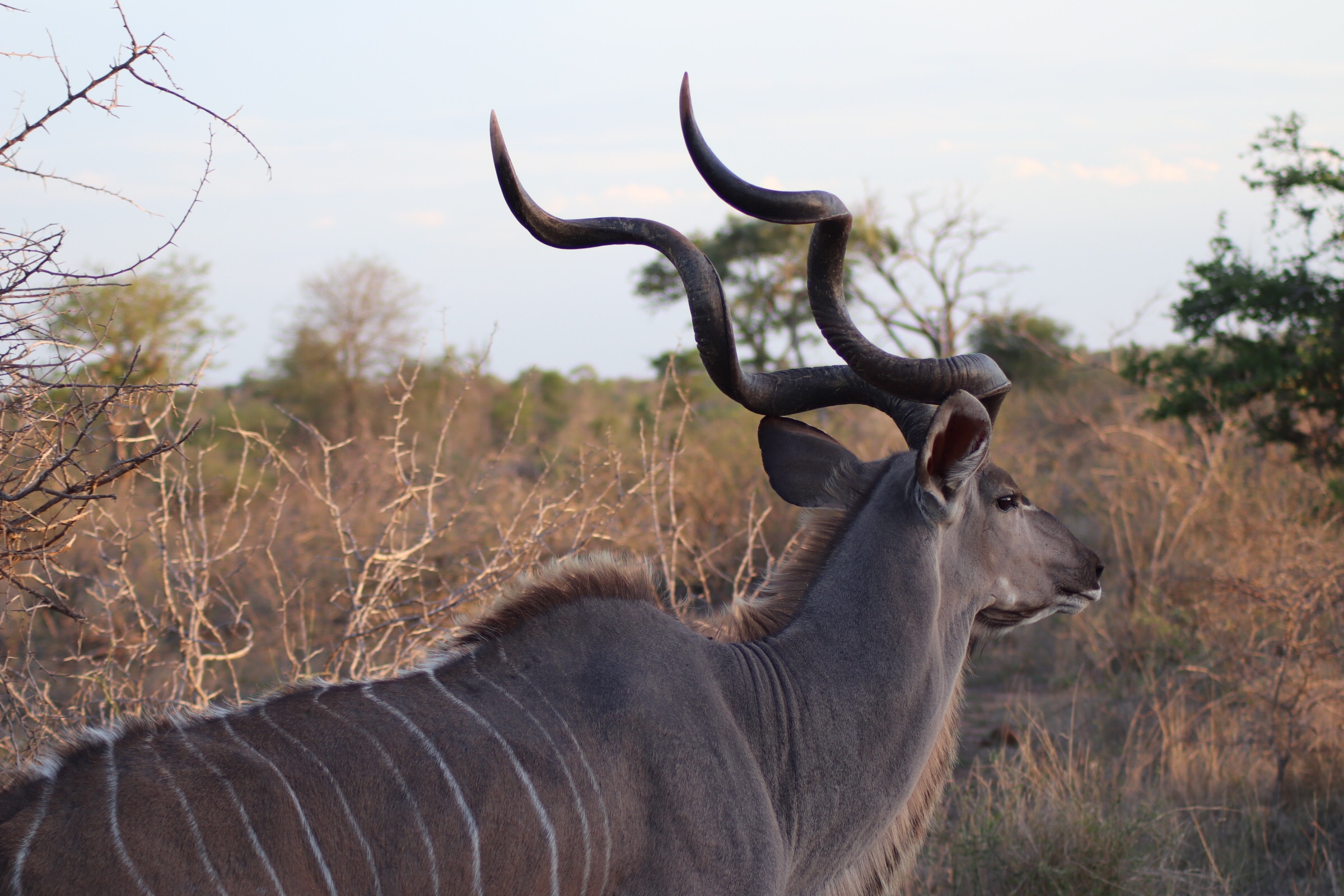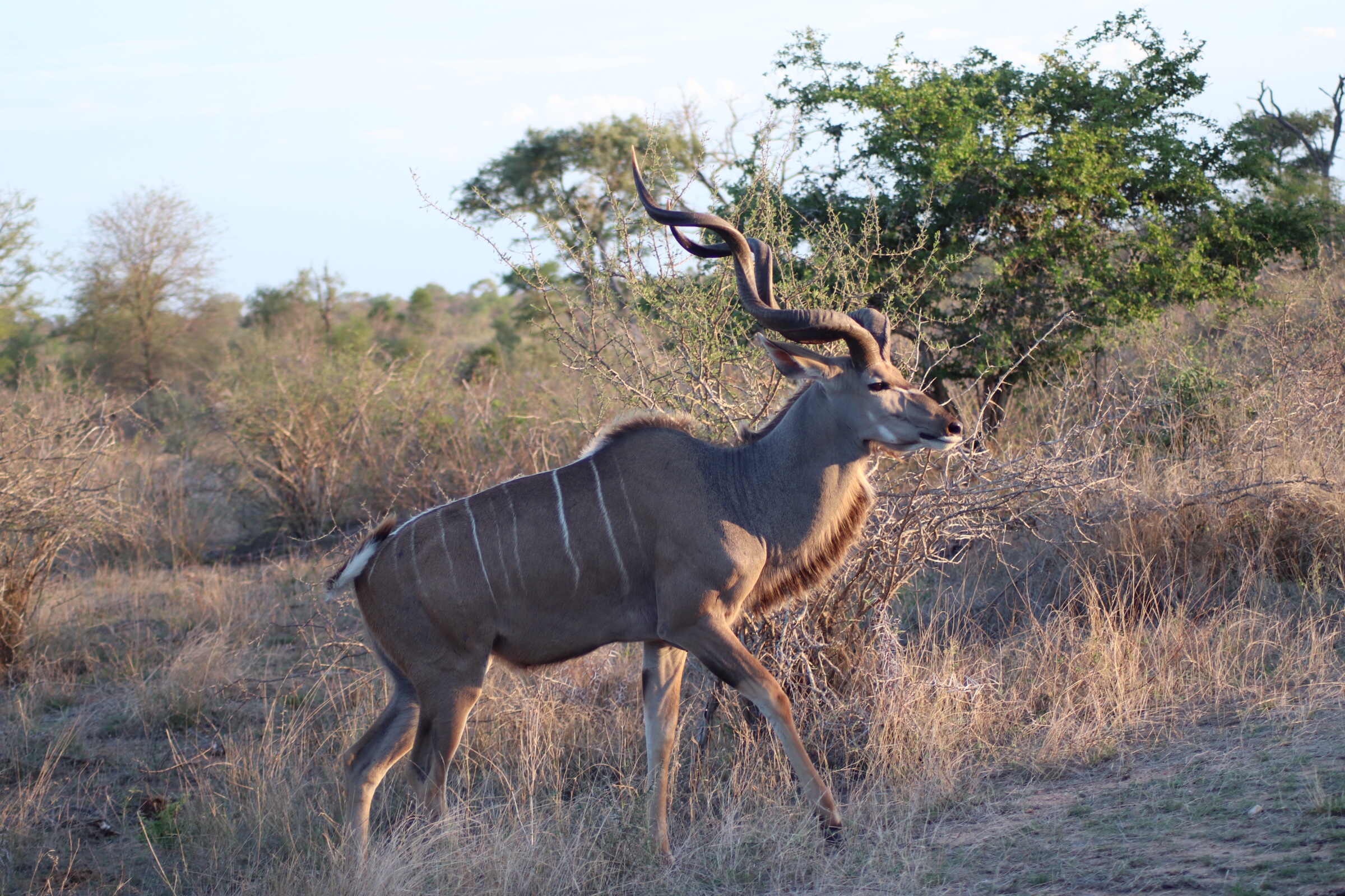 We continued along, stopping to admire more kudu and their beautiful twisted horns along the way. Unlike American deer where the antlers grow and routinely break and fall off, antelope horns are a part of their skull, and it is very painful for the animal if they break. They have one pair for life that continue to grow and evolve unlike the deer.