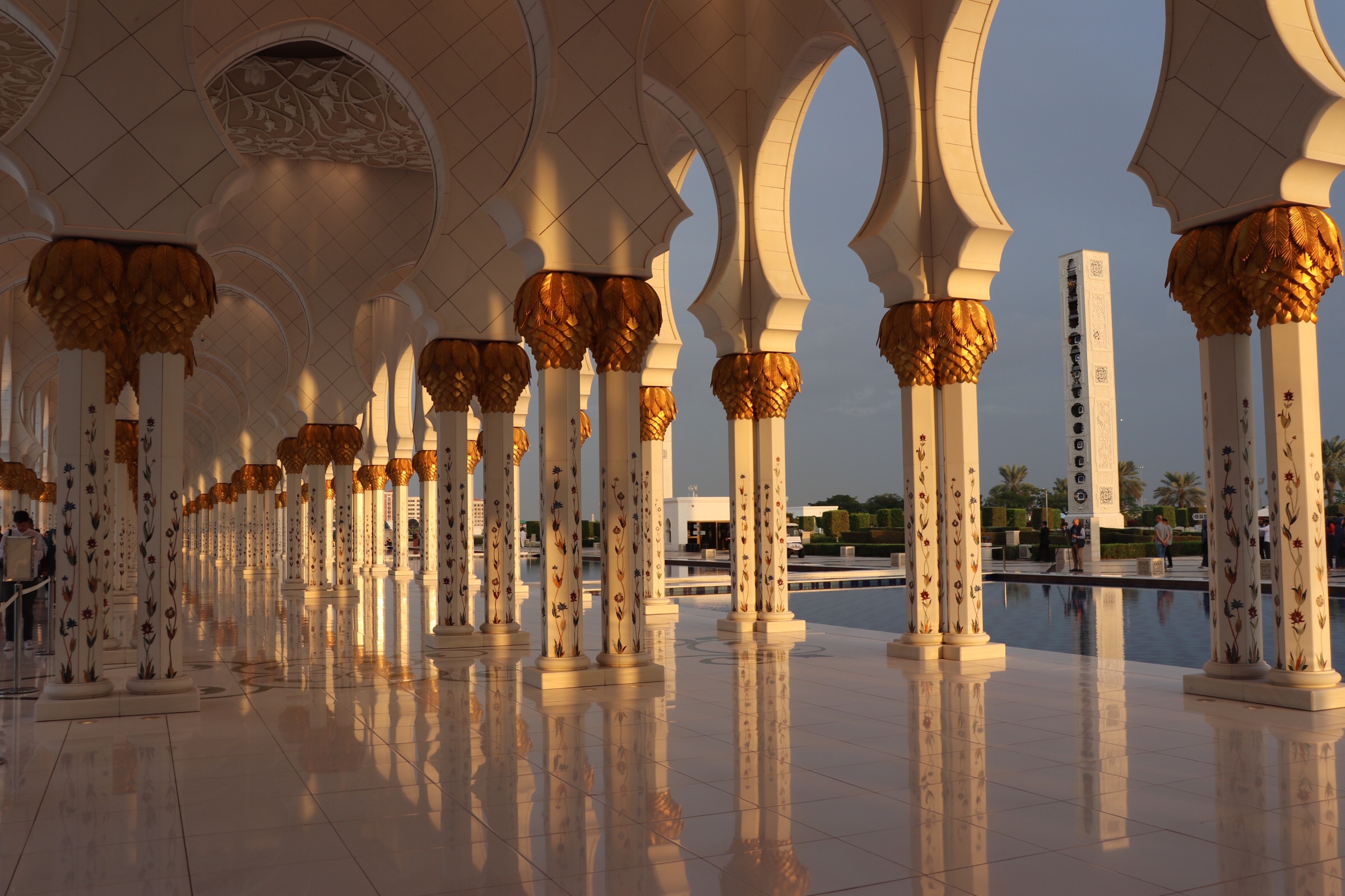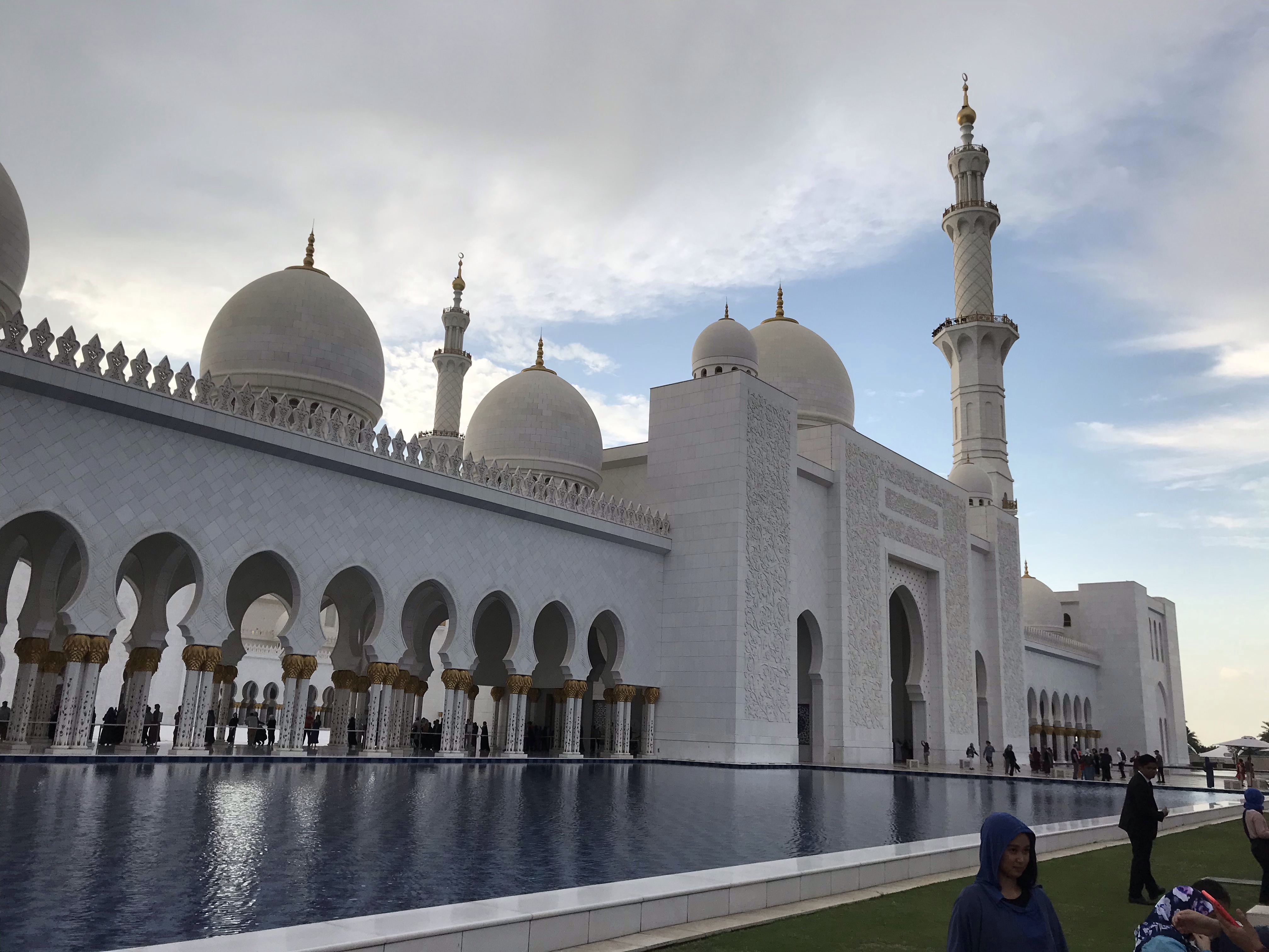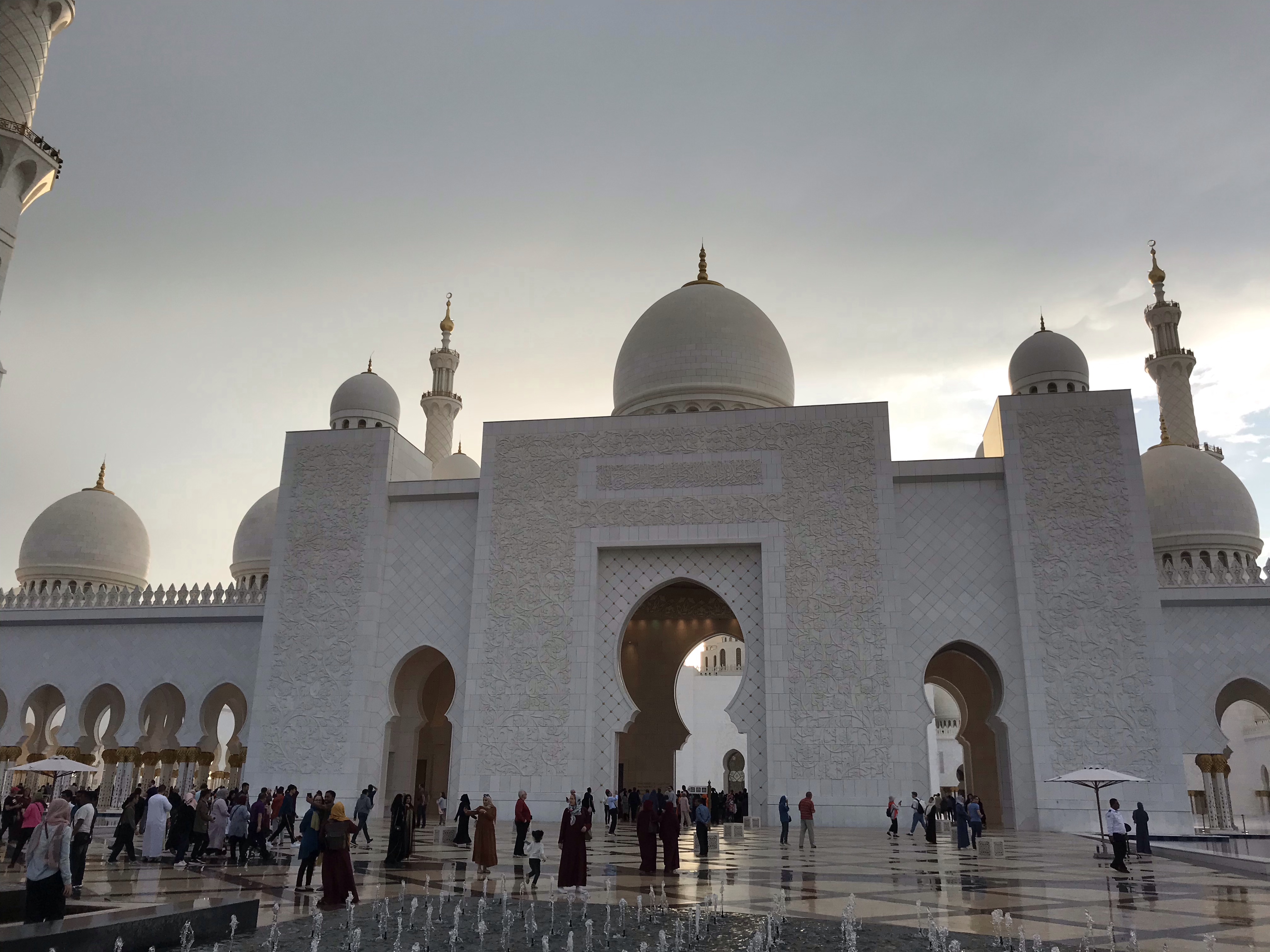 During the later afternoon of the second day, after a cloudy lounge by the pool, we took a field trip to the Great Mosque for a cheap $4 taxi. The mosque lived up to its name, as it was made of beautiful marble and an impressive and large structure. The mosque took almost ten years to build and cost over $500 million when it was completed in 2009. It was a very impressive structure and we enjoyed walking around the marble courtyards and marble inside (…marble everything really). As we were getting ready to leave we even had some sun pop out from behind the clouds.