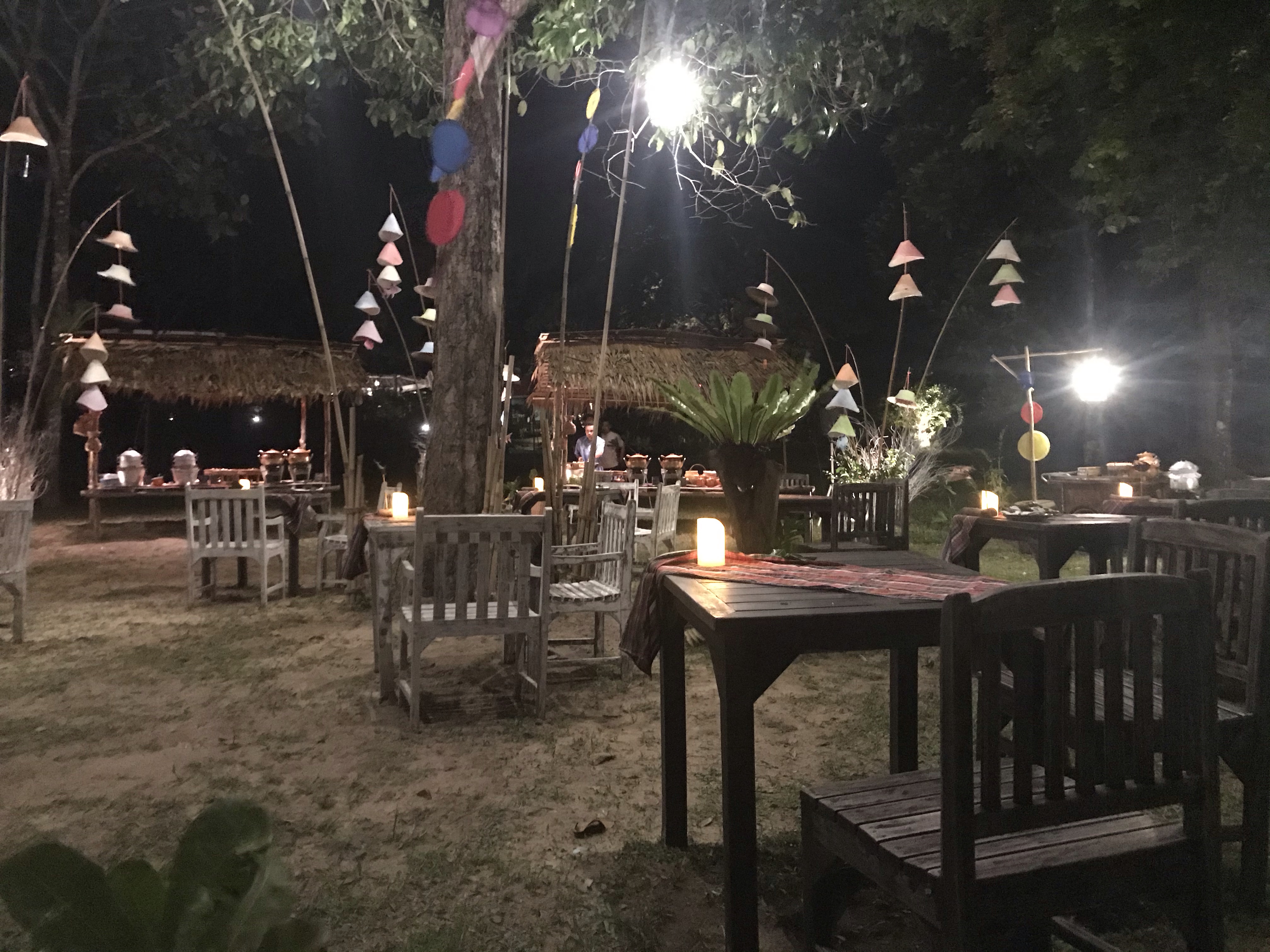 That evening the hotel was hosting a Thai street market event with traditional Thai dancing. On one of the lawns not far from the sea, they had set up little stands to look like food stalls and were serving different Thai street foods which you could take bites of to taste. The food in Thailand continued to live up to its delicious standard. We had a fried mussel omelette, delicious skewers of beef and chicken, rice dumplings, Thai sausage, steamed bites of fish and prawns, and more, all followed by fresh juicy fruit and banana grilled and cooked in leaves for desert. Everything was wonderful and it was an enjoyable evening of food and entertainment under the nicely decorated trees and bamboo.