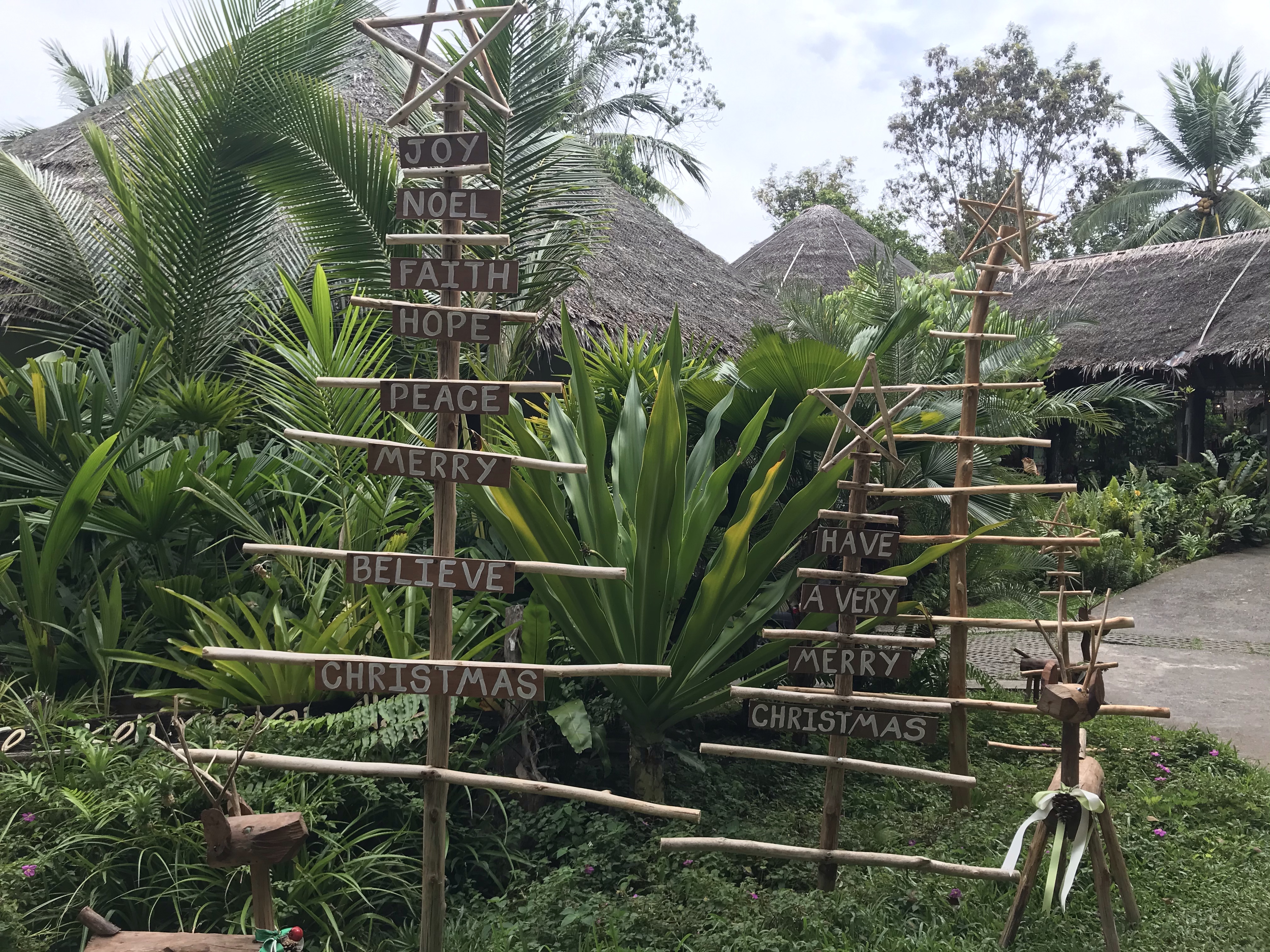 On our final day we had to take the ferry late afternoon so we still had the morning to spend enjoying the sea views. We also noticed the hotel had started decorating for Christmas – hard to imagine the holiday season when it was 90 degrees out! Unfortunately, there was cloud cover on the last day, but we still spent some time by the pool and the beach before heading toward the town for lunch before our ferry. Full with delicious Thai food we took a taxi to the ferry, said goodbye to the Thai islands, and headed for the airport where we would catch a flight to Chiang Mai in Northern Thailand later that evening.