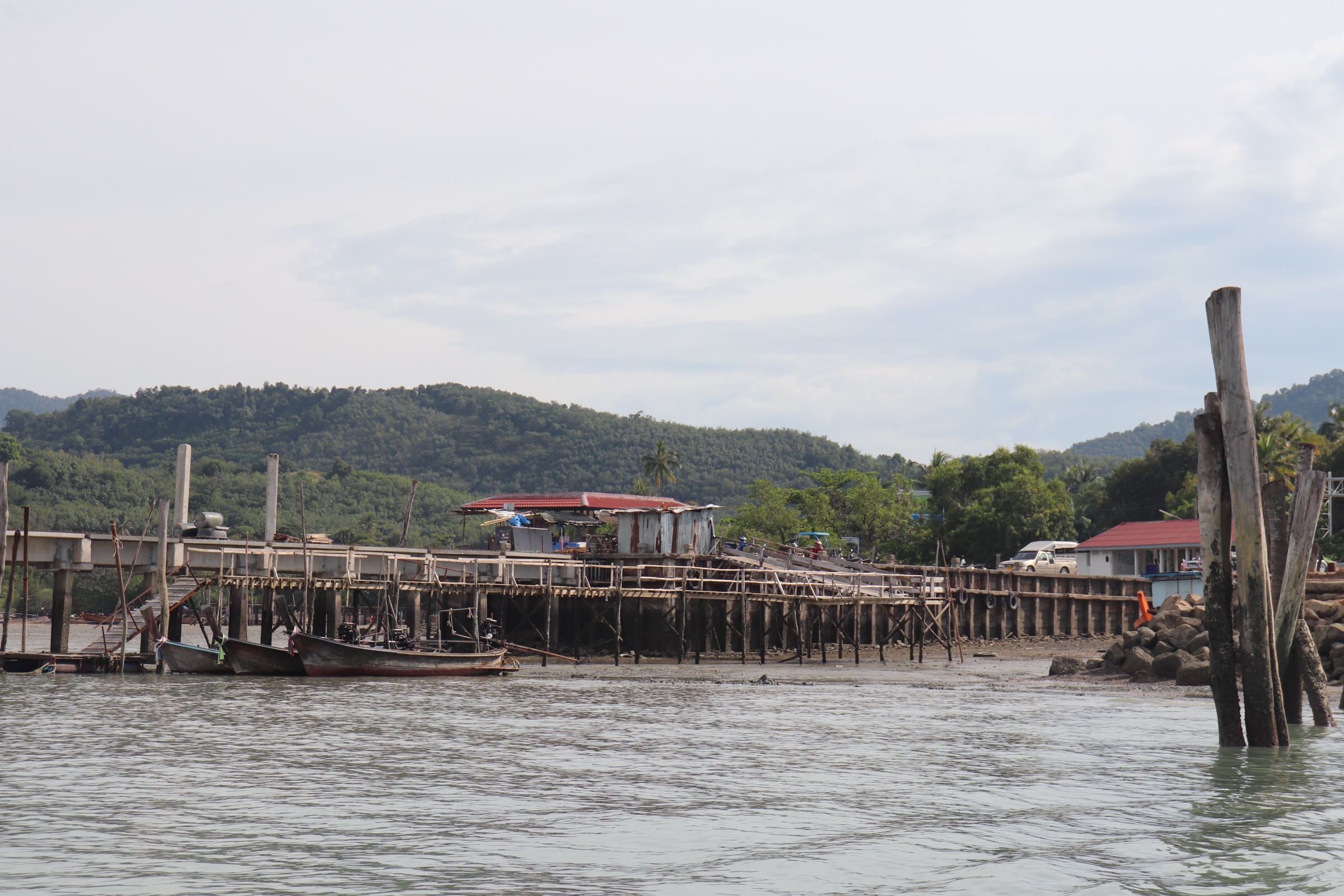 Early the next morning we were picked up by our transit at the airport to the pier which was about 20 minutes drive to the airport. In order to get to our hotel on Koh Yao Yai island we would have to drive to the pier, then take a ferry, and then a taxi to the hotel. We arrived at the pier and checked in with a man sitting at a folding table for our speed boat ferry. We had the option of a speedboat ferry or a long tail boat to get to the island. The long tail boats are the more typical Thai boat, but these take nearly twice as long to get there, which is why we decided to opt for the speed boat. They are called long tail because they have a judge motor attached to a very long rudder sticking out that is used to steer the boar by a man manually controlling it in the back. By comparison our speedboat had two motors and was steered by the driver in the front. As cool as it would have been to take the long tail boat, we were eager to get our Thai holiday started. We tossed our luggage aboard and climbed in, and enjoyed the beautiful 30 minute ride across the water, taking in the views of the many islands we passed and those in the distance.